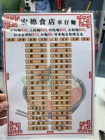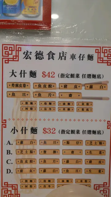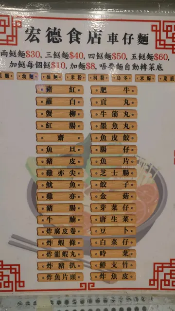 宏德食店係柴灣細路嘅味覺學生時代,轉頭已經食足25年都係呢個靚味,一踩入舖,熟悉辣醬香撲面而來,猶如返咗屋企。唔少食客都擁護佢:「呢度係港島區最好食嘅車仔麵」,因為邊度仲有人可以堅持湯唔過鹹、食材唔缩水,仲用心過咁多年?推薦首位係佢啲——唔似茶餐廳枱上嗰啲死油辣椒,而係老闆特別分開上,每啖都勁香、帶一點開胃辣勁,慎用都夠提味。再嚟係,全部即點即炸,炸得香脆但唔油膩,豬紅滑彈入味,魷魚又脆又爽牙,緊緊係記憶中嗰碗最『鮮嘅古早味』。仲有食客話佢嘅夠透紅、甜入心,拌到爽身,冇爛爛貼碟,好少啲碗麵可以整得咁堅持。仲有炸春卷、炸魚皮都係噹噹上枱,次次都係最新鮮熱辣,食得落到心入面。講真,一碗車仔麵走咗幾十年幾百餐都冇變味,仲係嗰條味,價錢雖然唔算細但以咁實在嘅質素同熱情,真係抵到冇朋友。每次返到熟食中心都想一撲,再嚟一次溫暖嘅回憶味。…查看更多