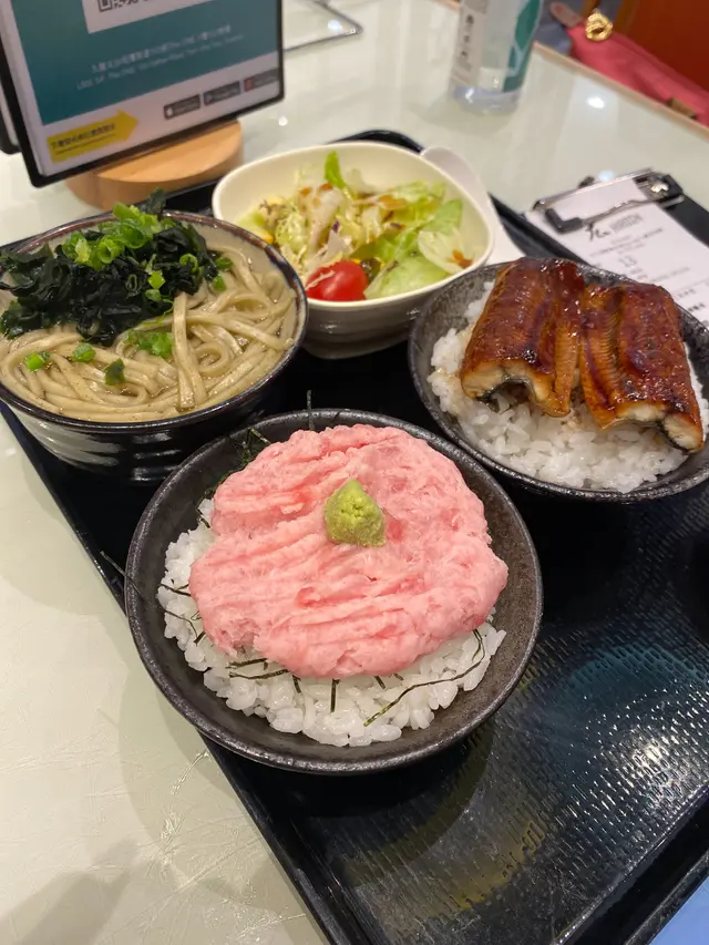 想一次過滿足晒三種唔同口感,但又唔想叫太多份黎食? 呢個 💛迷你彩丼定食💛就岩晒你心意💖每樣都細細碗,但份量又岩岩好👏🏻超超超細食既你仲可以同朋友至愛開心share添!🤗必食之選:💛迷你彩丼定食💛HKD168 ✅小碗鰻魚飯 、小碗吞拿魚碎(魚生飯)、小碗海藻烏冬、小碗沙律🥗、小抹茶蛋糕🍰 & 錫蘭紅茶☕️但大食妹嘅我,又點夠飽,叫多份先!😈🤤鰻魚迷選:💛大鰻魚飯套餐💛 HKD198 ✅除咗一條大大嘅鰻魚,仲有沙律🥗、海草烏冬、小抹茶蛋糕🍰 & 錫蘭紅茶☕️整體黎講都唔錯,小貴囉,下次黎都係會揀迷你彩丼定食,咩都有得試,又夠飽!…查看更多