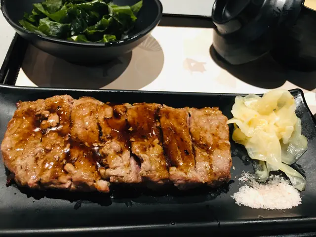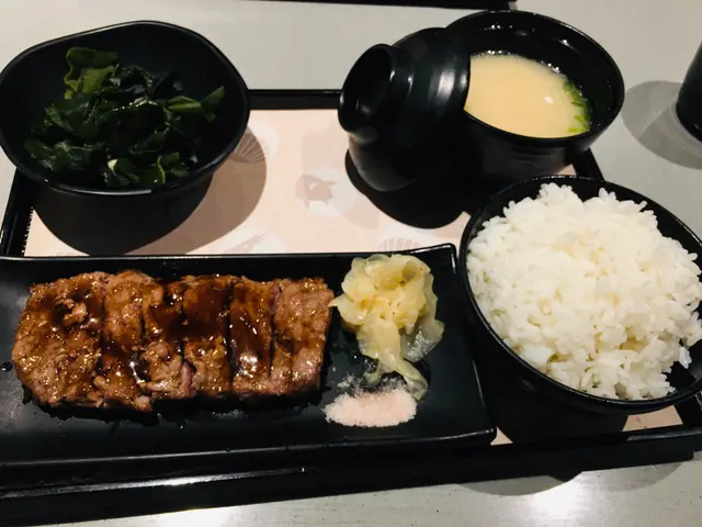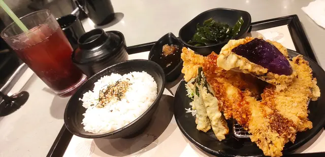 出餐速度都好快 一上枱就明顯見到塊豬扒係翻炸 炸到過左火好彩只係顏色比較深 但係唔影響味道嘅 冇燶味豬扒上面鋪咗一堆柚子味嘅蘿蔔蓉初頭我仲以為係豬扒上面放一堆柚子醬啲蘿蔔蓉食落都幾清新 減少炸豬扒嘅油膩感定食set仲配有一碗麵豉湯同前菜茶餐廳嘅價錢來講 我認為不過不失可以接受