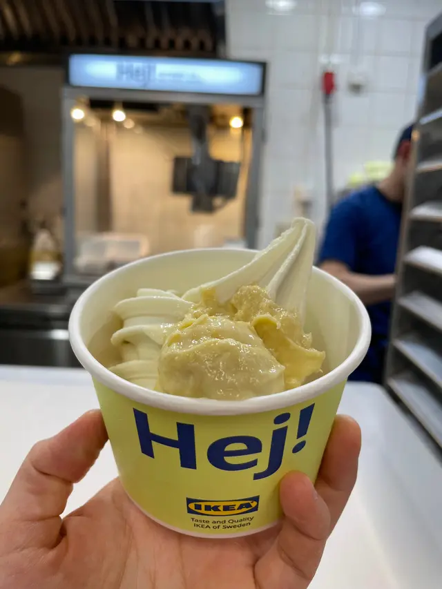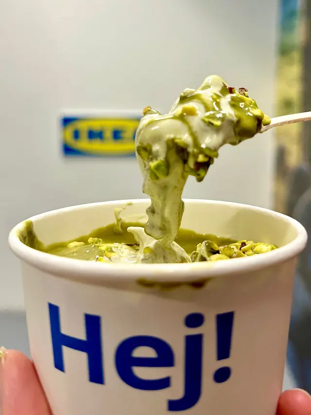 五月期間限定❤️快食甜品之選🍦三重開心果新地 $23頂層開心果醬+碎粒雙重攻勢!一啖挖落去,脆脆嘅開心果碎同濃郁醬汁撞上軟滑新地,冰火口感超有層次~ 🧇脆脆開心果格仔餅 $23格仔餅皮脆到「咔滋」聲,中間夾滿厚厚開心果醬同爆炸多果碎,每啖都係罪惡感滿滿嘅滿足✨ 💡小貼士:新地融化得快,相機食先要手速!格仔餅記得趁熱食,凍咗會變硬~ 五月已過。。。期待IKEA下次再帶驚喜返嚟,開心果控們記得密切留意,下次一定要衝快啲啊! …查看更多