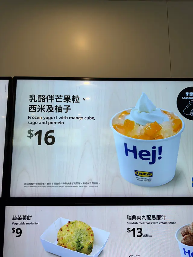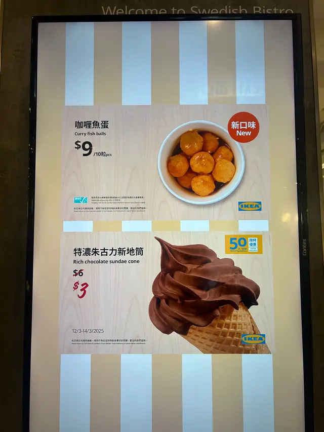 一推出榴槤牛奶新地配D168紅肉榴槤肉第一日就同朋友就即刻去試我揀咗中size $39 勁多榴槤肉,超級香甜,有徵微甘嘅感覺,仲有一絲絲嘅果肉,配埋牛奶雪糕,輕輕解咗嗰種甜漏嘅感覺,不過我哋兩份食一個都覺得好夠!🤣而且濃郁嘅感覺,成個人都榴槤味咁🤣直到凌晨三點,我啲胃氣都仲有榴槤味佢好似仲有其他榴槤美食,下次可以試埋一直以嚟都幾鍾意IKEA小食的,平時肉丸呀,雞翼呀都常食,係銅鑼灣算係平靚正嘅選擇啦。