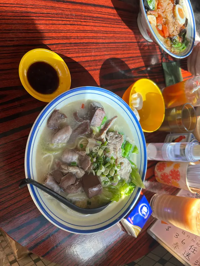 胡椒湯豬雜四拼公仔麵(豬紅、腩片、豬肺、墨魚頭)+ 凍鴛鴦