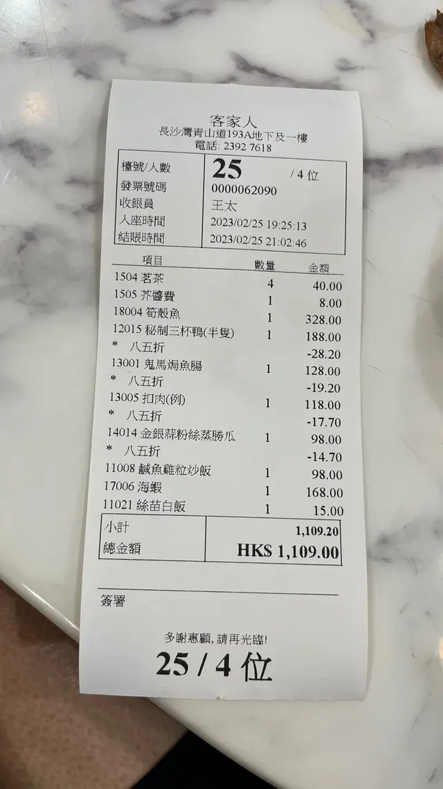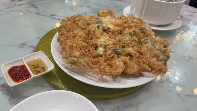 二訪這間高質實惠客家菜今次和家人過來慶祝中秋節人均不到 $200 已經吃到了豐富的菜式🦪 炸蠔餅這份餐點是我過來的原因坊間的蠔餅通常也炸得黃黃的,就是由非常舊,而且炸粉比主角多,也非常熱氣~但這裏的蠔餅不但賣相出眾,有著12吋 pizza 的size ,而且還是真材實料,每粒蠔仔都有大約拇指那麼大,炸粉皮薄新鮮,惹味脆口,全家人也讚不絕口!🐣客家鹽焗雞(半隻)雞肉新鮮嫩滑,大大隻,鹹鹹香香🐔藥膳黃酒煮雞湯口感實在,酒味濃郁的雞湯,雞肉煲到很腍很好吃🦆秘製三杯鴨第一次品嚐這種款式的調味,酸酸甜甜,鴨肉新鮮,開胃菜式🤍椒鹽豆腐經典的小炒,豆腐嫩而不散,皮薄香口!🥒蒸黃瓜這是非常驚喜的一款蔬,蒜蓉沾滿了粉絲及瓜,健康美味…查看更多