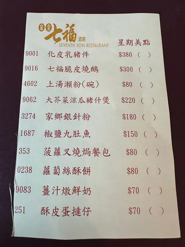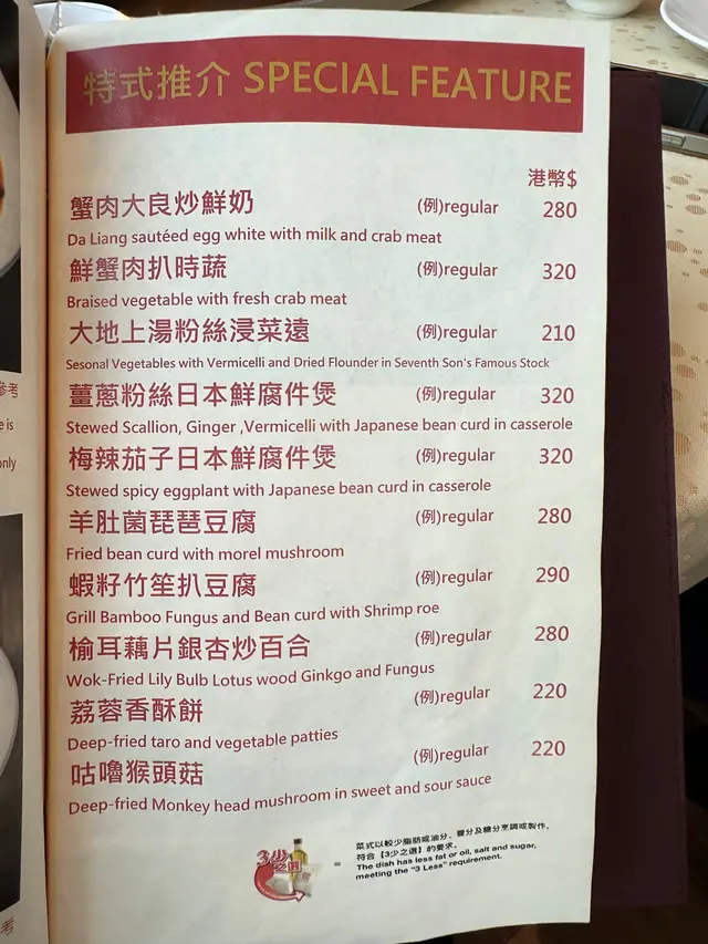 友人請食飯,去了米芝蓮一星高級粵菜「家全七福」,原來這家中菜由福臨門創辦人徐福全兒子、人稱七哥的徐維均所創立,在北京、上海、香港灣仔、尖沙咀以至東京都有分店,主打高級傳統粵菜,如鮑參翅肚、仙鶴神針及燒乳豬等,務求以上乘的時令食材加上豐富經驗的大師傅手藝,精心烹調每道上品佳餚。朋友叫我點菜,老實講,普通菜式都標價$380起,海鮮類如鮑魚、蟹蓋等動輒過千,實在不好意思點。最後兩個人吃了指天椒薑蔥炒鮮豬肝$280,七福脆皮雞半隻$380,及鮮茄滑蛋煮手切牛肉$380,最後有甜品生磨杏仁露及合桃露各$80,人均$700多。指天椒薑蔥炒厚切豬肝,新鮮又爽口;招牌七福脆皮雞皮脆肉嫩;鮮茄滑蛋煮手切牛肉看似是家常小菜,但其實做到不酸也不太甜亦不容易;而生磨合桃露比杏仁露有口感。可能點的都不是主打菜式,賣相及味道其實都是正常發揮,未有驚喜。…查看更多