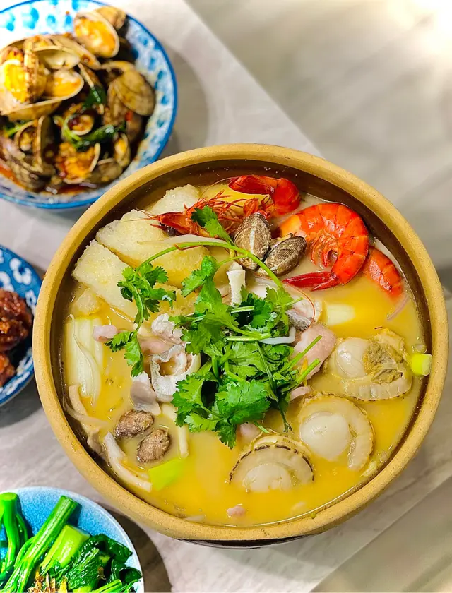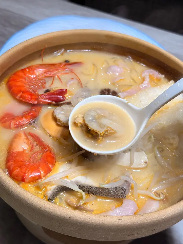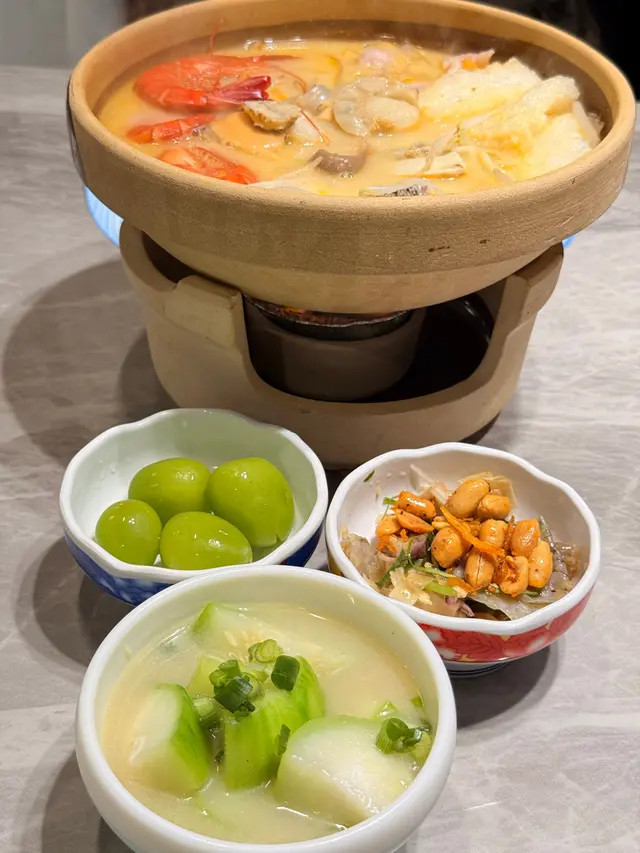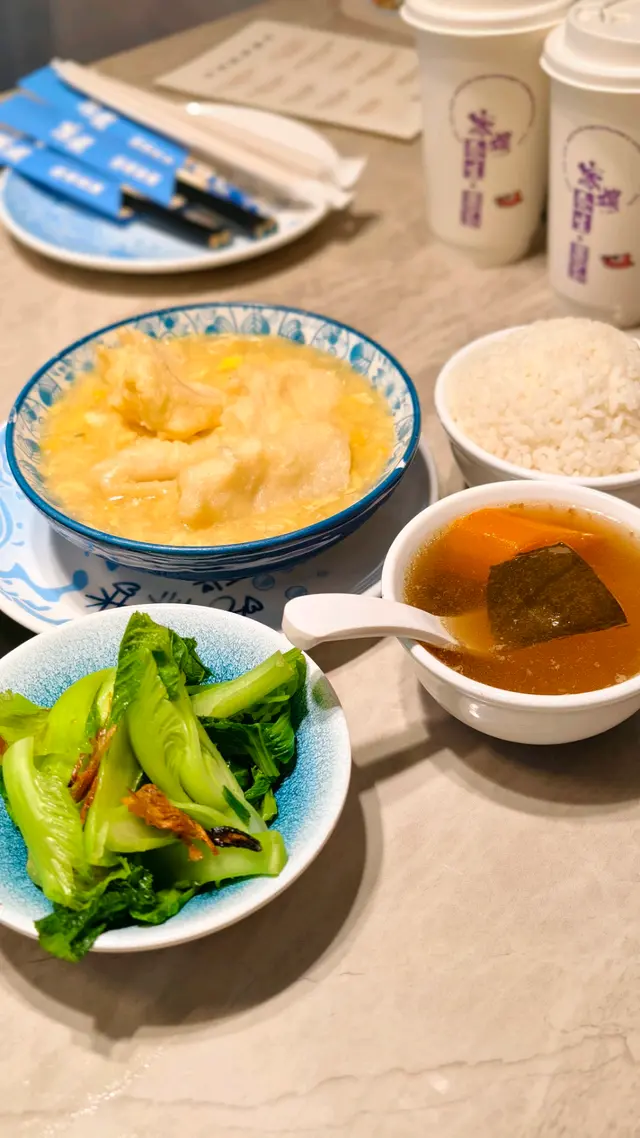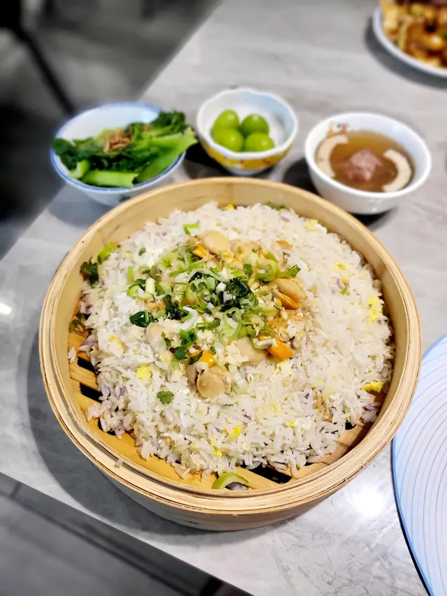 星期六打算帶bff到家嫂吃火鍋,不過來到後,發現餐廳推出了午市料理及兩餸飯,價錢經濟實惠,決定試試。金銀蒜澳洲帶子蒸飯蒸飯附送青菜、燉湯及水果。推介!這個蒸飯真的超惹味,入口有滿滿蒜香,而且飯內還加了粉絲碎、蛋絲及葱花,口感巨豐富,加上廚師豪不吝嗇放了大量澳洲帶子,鮮甜美味,大愛。花膠炆三黃雞飯同樣地三黃雞蛋附送燉湯、灼菜及珍珠米飯。雞件及花膠份量足,花膠厚薄適中,滑溜帶黏性,雞肉多肉鮮嫩。味道不會過鹹,非常好吃。街邊醬炒蜆炒蜆夠味又惹味,辣中大甜,蜆肉肥美無沙。家鄉陳醋小籠包皮薄餡多,一口咬下有滿滿肉汁溢出,鮮味十足,充滿陳醋味及肉香。涼拌炸魚皮炸魚皮入口微脆,味道辛辣,搭配花生及青瓜絲,中和辣度同時增加口感。香辣魷魚魷魚爽脆,味道香辣,這款小食非常適合佐酒。鴨屎香單縱檸檬茶及鮮榨香芒菠蘿汁檸檬茶茶味濃郁,有獨特芳香的香水檸檬味;香芒菠蘿汁的菠蘿味較中,帶點點菠蘿肉,味道酸甜,幫助消化。…查看更多