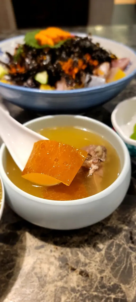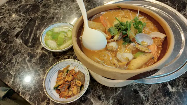 隱世食府「家嫂」隱世工廠區既柴灣家嫂,一反舊式工業大廈裝修,餐廳空間開揚,桌距寬鬆,無左鬧市食肆既壓迫感。簡約裝修搭配暖黃燈光令人有舒適感,同過往既「工廠飯堂」感覺不一樣。店家提供任食火鍋及單點套餐兩種選擇,隨餐附贈每日例湯及無限靚仔白飯。例湯絕非敷衍之作,老火冬瓜薏米煲豬骨不是味精湯,火候十足,套餐抵食及有飽足感。魚生海膽飯食:$68蚊有魚生海膽飯食,真係一個字抵。醋飯基底鋪滿三文魚、希靈魚、八爪魚刺身,頂部海膽,色質靚,絕無腥苦味,份量還不少,令人驚喜。隨餐送醃蘿蔔與蜜瓜粒,可以解膩。乾炒海鮮手打烏冬:鑊氣十足既日式烏冬,烏冬口感十足。蝦仁、帶子、魚柳等等海鮮份量大方,味道有層次。家嫂陳醋小籠包(招牌必點):每隻小籠包頂都插住迷你陳醋針筒,食客可自行注射醋汁。皮薄餡靚,湯汁多不在話下,最正係陳醋經注射後,味道同豬肉餡好夾,比傳統薑絲蘸醋既食法更顯特別。松露蝦多士 (精緻小食):一口尺寸容易入口,多士炸得金黃酥脆,但不油膩,蝦膠彈牙,重點係勁多松露醬,每口都有濃郁菌香。建議上台即食。蜜汁雞翼:看似普通的家常菜,但有驚喜。雞翼外皮烤至蜜糖色,咬開肉汁溢出,秘製醬汁甜甜地,尾帶少少檸檬香。總結街坊價錢,高質既物品,而且家嫂堅持大份量與創意並重,十分難得。特別欣賞將傳統菜式注入玩味元素(陳醋針筒),每道菜都顯出出廚師團隊用心。午市人均消費不過百元,絕對係抵食。…查看更多
