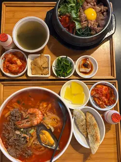 🇰🇷正宗傳統韓國料理✅餐廳裝修有韓國家庭式料理嘅味道👅Menu入面款式勁多💯好正👍🫕蔘雞湯:食韓國野一定要試吓韓國嘅湯飯🍚講到湯飯🔥第一時間就諗起蔘雞湯喇👍呢度仲係有原隻嫰鷄🐤啖啖肉好滑呀❤️入面仲有兩條人參💯連湯連鷄同埋鷄中間嘅糯米一齊食✅超𤴓呀😍喜歡濃味啲仲可以點啲椒鹽食添🥳🍖LA牛肋骨:牛肋骨好重牛味😋牛肋骨下面仲鋪滿晒好甜嘅洋蔥🧅熱辣辣鐵板上枱🔥夠晒惹味呀❤️每份套餐都跟幾款前菜😍仲有支韓國版嘅益力多添✅唔錯呀👍…查看更多