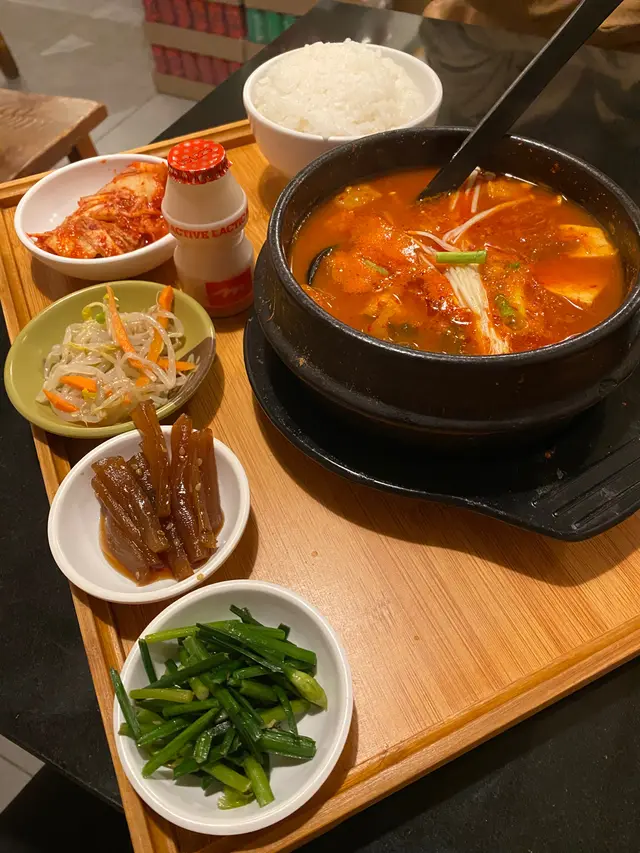 放假去尖沙咀韓國街睇下有咩飲,見到家家戶戶有啲人排隊,就跟隊😂😂😂試下韓式套餐🍜辣牛肉海鮮湯麵 set湯底鮮香濃郁,辣中帶甜,牛肉軟嫩搭配彈牙麵條與新鮮海鮮,層次豐富。🍚韓式辣豬肉石頭飯 set上桌時滋滋聲,熱辣辣! 豬肉香辣惹味,與焦香飯焦交融,每一口都充滿傳統風味。原來所有既set都係包含經典韓國甜品——益力多,酸甜清爽,差啲再額外叫左野飲😂整體味道好正宗,份量都十足,性價比非常ok阿!…查看更多