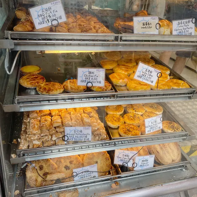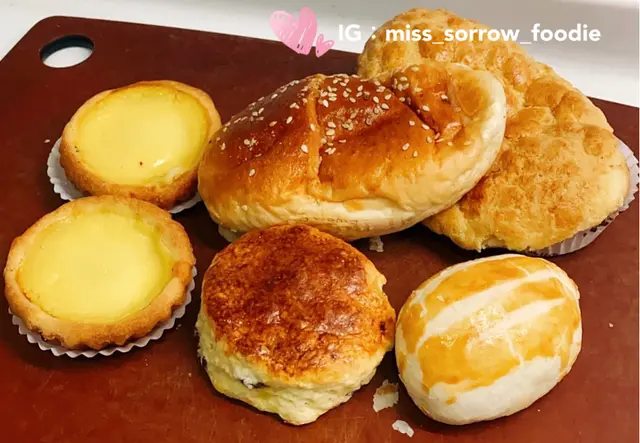 呢間麵包舖提供多款傳統包類、蛋糕、曲奇、批撻等,真係每日早餐下午茶食佢都唔會嫌😋主力做街坊生意,所以價格非常親民,而且姐姐服務態度超Nice,人情味勁濃👨‍👩‍👧‍👦💗曲奇蛋撻($3.5)外層嘅曲奇撻皮烤至金黃香脆,食落鬆化富牛油香🥧中間嘅雞蛋布甸滑溜溜,有番咁上下厚度,食落蛋味特別濃郁🥚💗提子鬆餅($5)表層略嫌未夠脆,但整體口感都算鬆化濕潤,唔會過軟章口,重點當然有大量提子乾增加口感同甜味🍇如果蛋香同牛油香再突出d會更好,不過呢個價錢已經做唔得唔錯🥯💗蓮蓉皮蛋酥($8)酥皮鬆化唔黏口,而且厚薄適中,𥚃面有綿密嘅蓮蓉,呢個唔似一般嘅皮蛋酥咁放有酸薑片,不過悲傷小姐比較鍾意呢款。最值得讚係有原個皮蛋,Q彈嘅蛋白配上甘香嘅蛋黃,非常豪爽🤩💗菠蘿豆蓉包($8)菠蘿包嘅重點當然係面層香脆鬆化嘅菠蘿皮🍍覆蓋面夠大唔會唔夠喉,食落好重牛油香🧈麵包仲有滿滿香甜嘅豆沙蓉作餡料,令整體味道更有層次💗雞尾包($5)麵包啱啱新鮮出爐熱辣辣,質感非常軟熟煙韌,富麵粉香🍞中間以砂糖同椰絲作餡料,帶濃郁嘅甜味,但絕對唔會膩🥥ดูเพิ่มเติม