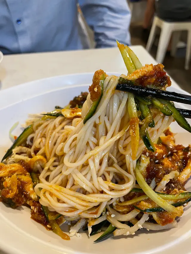 甚少嚟黃大仙唔想食黃大仙中心入邊啲連鎖餐廳見talkfood介紹過呢間幾有特色,決定試試掙扎咗一陣要菜飯定餃子🤣▶️ 招牌蒸餃 ($33/8隻)成個蒸籠上,好似小籠包咁,好打卡able餃子採用「柳葉式」包法,同一般餃子唔同🥟更能突顯餃子皮煙靭口感每粒餃子唔算巨大,不過皮薄餡料正餡料由韭菜、紅蘿蔔、新鮮豬肉、香蔥攪拌而成😋豬肉食落嫩而不韌,調味適中而不油膩當中韭菜味道最突出,香蔥爽脆蒸餃好處係皮薄都唔驚易爛,唯一係乾爭少少,所以我有點醋汁食▶️ 胡麻醬拌麵+ 上海豬扒 ($45+20)胡麻醬拌麵本身配有大量幼嫩雞絲同青瓜🥒食之前要撈勻,確保每條麵都沾滿胡麻醬汁胡麻醬汁份量足夠,味道唔會太鹹😋稀杰度黏得住麵條用上幼身上海麵,煙煙韌韌又掛汁整體似一個雞絲粉皮,只係面底唔同夏天食好清爽😌上海豬扒就一般般,唔算厚肉且未夠酥脆,勝在無骨🐷▶️ 凍陳皮山楂茉莉花茶 ($17)姐姐推介,梗係試吓好有誠意嘅一杯飲品,入面落足茉莉花、陳皮、山楂自家製而唔係茶包🍵飲落微甜,甜味自然,整體幾養生鍾意陳皮甘甜嘅味道👅-無論面定餃子都唔錯,感覺正宗地道欣賞全部自家製,食材新鮮服務都好好,姐姐好友善有笑容,仲同我吹水☺️叫我有興趣下次試埋菜飯環境舊少少,狹窄少少🤏🏻性價比高,今餐 ~$50/pax,份量夠飽,平民抵食!查看更多