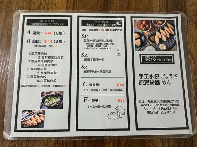 呢一日平日放假,其實係想去深水埗Cafe Hopping嘅,但係去到想食嗰間要等位,無諗過平日下午都無位🥹最尾等咗陣肚餓,轉咗去食 #餃子 😌早幾年前曾經食過「家後」,印象係比較早期湯餃個湯底係用真係煲湯嗰啲湯🫶🏻最後叫咗呢幾樣:🥟 餃子系列#雲耳椰菜豬肉餃 $40/8隻粒粒飽滿足料,雲耳爽口,湯底係粉葛湯,食完個餃子仲飲埋碗湯😌#洋葱豬肉餃煎餃 $40/8隻煎得金黃酥脆,記得配埋佢個 #辣菜甫 一齊食,個辣菜脯唔會太辣又非常惹味!🍹 飲品跟餃子+ $6 可以有嘢飲,叫咗經典 #凍檸茶 🍖 特色小食#滷水豬大腸 $27滷得入味👍#麻辣豬肚 $29 麻香帶微辣,豬肚有嚼勁另外叫咗🍰 #芝士蛋糕 無錯,呢間餃子店係有芝士蛋糕賣嘅!對上一次嚟太飽無食到,今次終於試咗❤️呢日有原味、焙茶、開心果、蘋果味,最尾揀咗 #焙茶味 同 #蘋果味 $35/件☕️焙茶味芝士蛋糕:茶味香濃郁唔苦澀,蛋糕口感綿密🍎蘋果味芝士蛋糕:淡淡蘋果清香,食到細碎果肉,清爽不膩! 當日一路食一路有人入去買生餃子!証明餃子質素有保證!芝士蛋糕有驚喜~ 可以去試吓~…查看更多