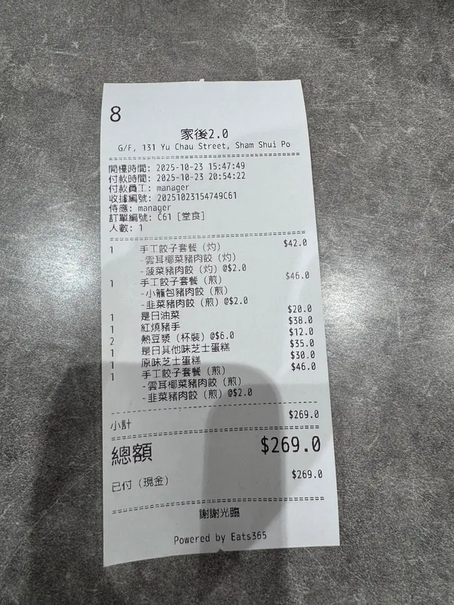 家後2.0 (深水埗) 網址: https://s.openrice.com/QrbS04XeC00 地址: 香港深水埗汝州街131號地舖 電話: +852 67007754