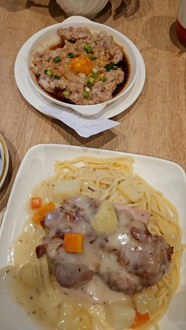 由於今天在火炭參加活動,全日都會在火炭搵食,到午飯時間,有位一同參加活動嘅朋友提議到火炭村午餐,我人生路不熟,難得有人帶路當然樂意跟隨,火炭村就在火炭鐵路站對面岸,行過去好近。家樂餐廳,午飯時間好多人,我倆入去要搭枱,快快點了兩個午餐。白汁雞扒火腿燴意粉,個白汁係咸咸地忌廉汁有香草味,雞扒煎得好香但個底味唔多啱我,意粉大大碟份量十足。咸蛋蒸肉餅跟白飯,肉餅調味幾好肥瘦均勻,豉油汁唔太咸,同白飯配合。不過真係好逼,無辦法食完快啲走。…查看更多