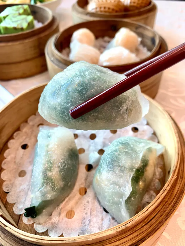 一籠粉果有四隻,粉果皮唔算好厚,饀料亦唔算好多,細細地一件易啪入口。