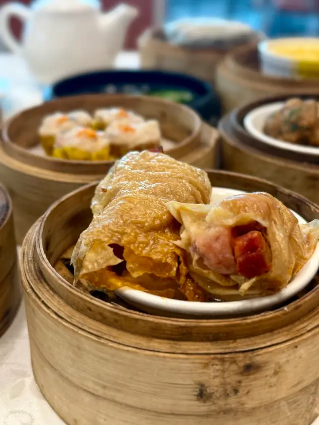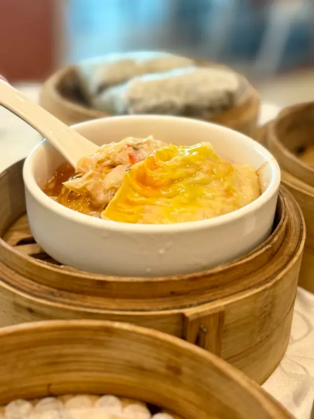 豆腐皮包裹住或雞肉、厚切火腿條及豬皮去蒸,一口食晒四款材料,滋味無窮。