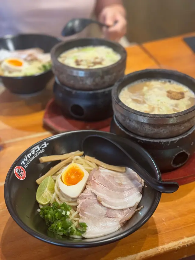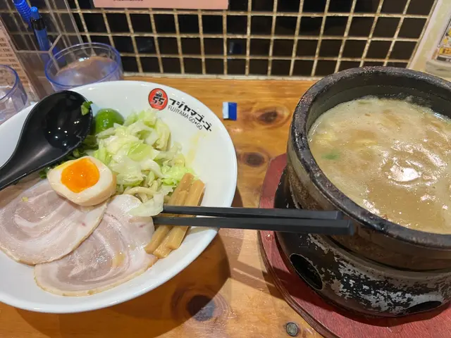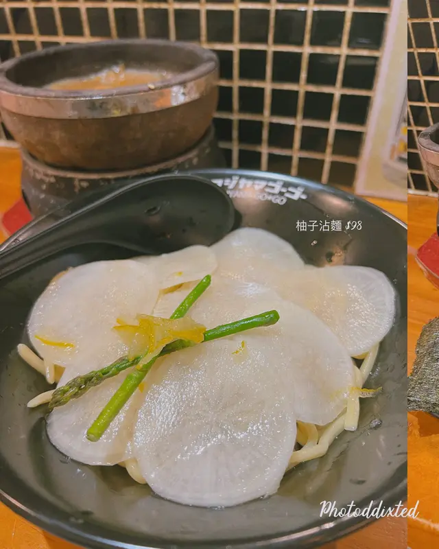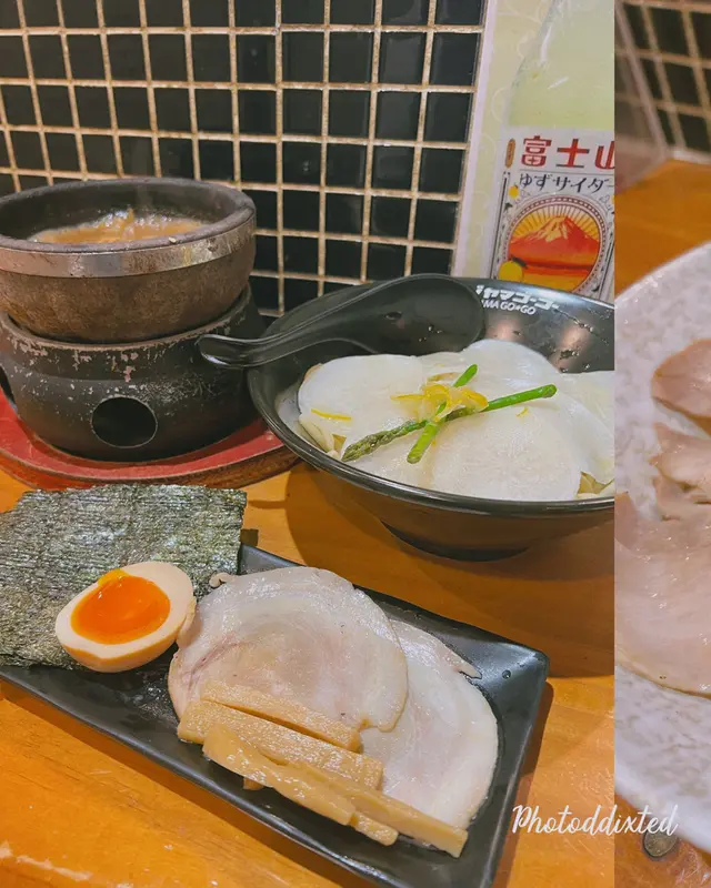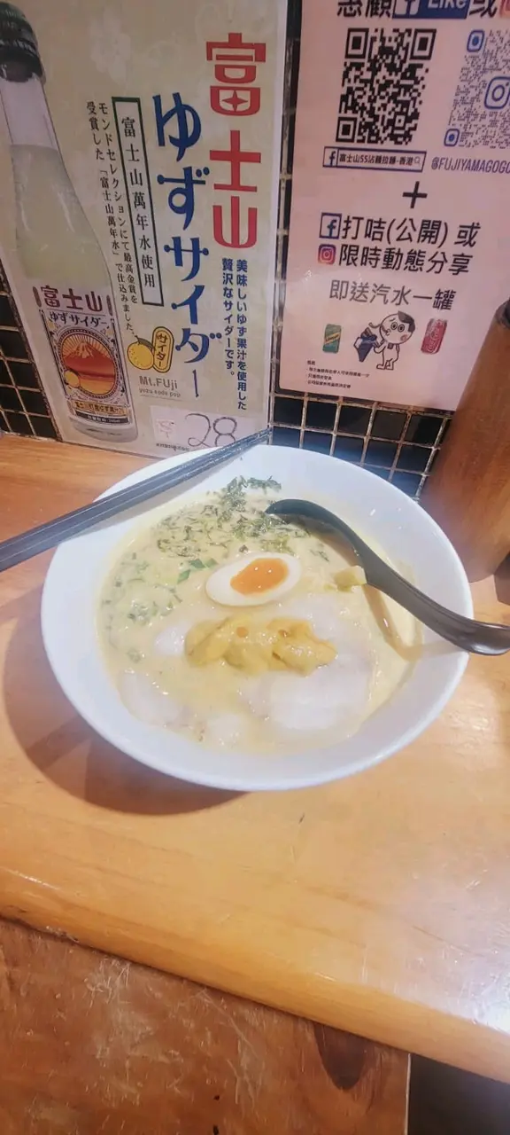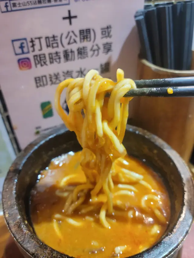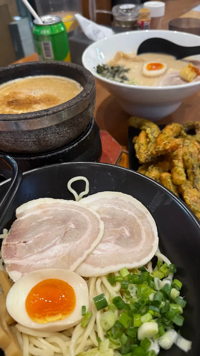 富士山55 (拉麵沾麵專門店) ,這次光顧感覺非常滿意。首先,沾麵的賣相非常吸引,麵條上鋪滿新鮮爽口的白蘿蔔片,配上少量柚子皮,帶來清新香氣。麵條煙韌彈牙,配合蘿蔔的清甜,令人胃口大開。沾汁以鐵鍋盛載,熱氣騰騰,湯底濃郁,帶有魚介香和豚骨味,鹹香適中,每一口都感受到用心熬製。配菜方面,有厚切叉燒、溏心蛋、竹筍和紫菜,叉燒肥瘦相間,入口即化,紫菜脆口,溏心蛋流心效果理想,十分加分。整體來說,富士山55的沾麵水準高,無論是麵條、湯底還是配料都非常出色。用餐環境乾淨舒適,服務親切,價格亦合理。推薦給喜歡日式沾麵的朋友,一試難忘!…查看更多