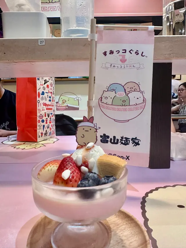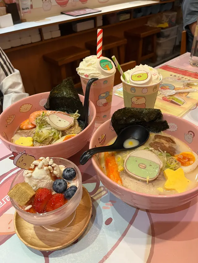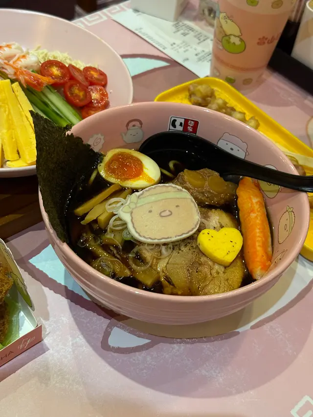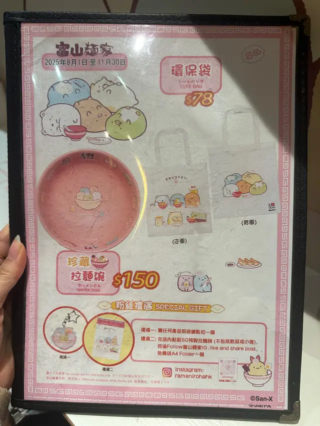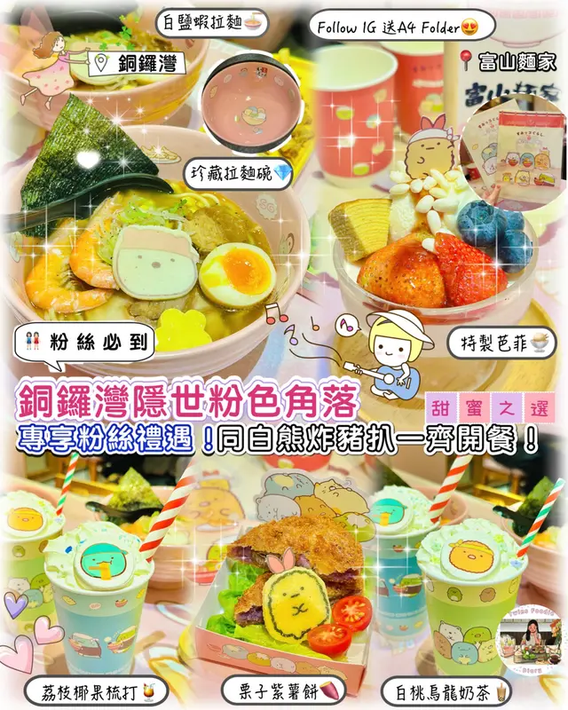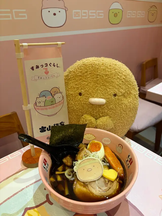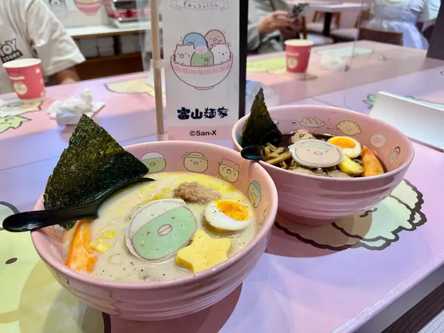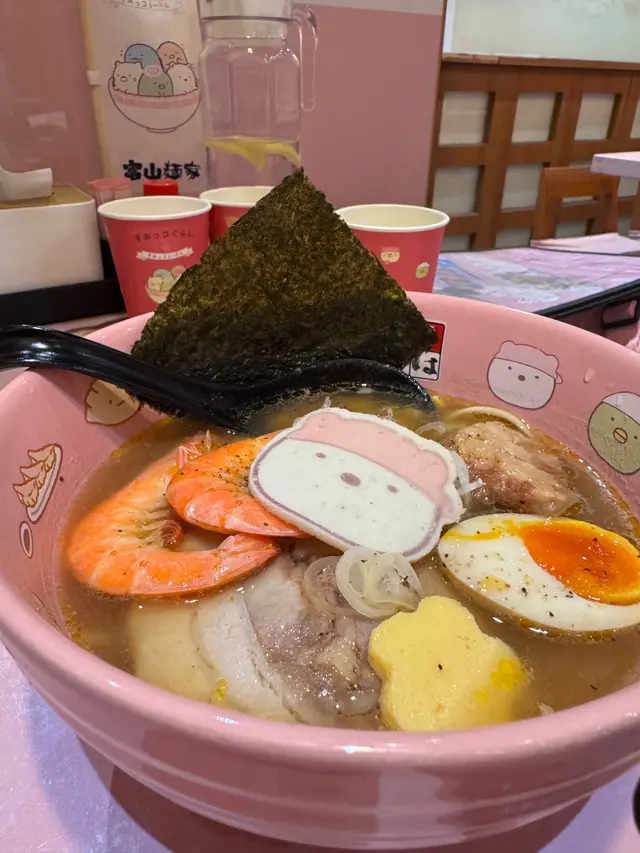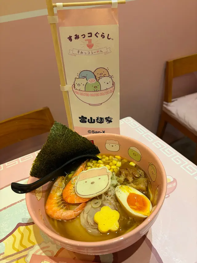 身為 mofusand 迷既我,就算銅鑼灣唔係常出沒的地方,都要去富山拉麵,皆因佢哋近排既期間限定主題店就係炸蝦貓 mofusand 啦~揀左平日放工時間去朝聖,遠遠已經見到人龍,但唔算等得好耐還可以接受,排隊時就諗定食咩,坐低無耐就上菜囉 👍🏻特製牛奶拉麵 $98開頭有點擔心湯底會唔會太奶,又唔會喎,反而恰到好處好香滑,拉麵彈牙,仲有豬軟骨、叉燒、炸蝦、半隻流心蛋,同埋貓貓圖案既魚片,好味 😋特製咖喱撈麵 $118這個是朋友點的,炸蝦外脆內軟,就算相機食先都仲熱乎乎,而且連配菜都好有心思,造型有星星同心心,睇見到開心喎~特製章魚燒 $38一口小丸子,岩晒咀仔細細既朋友~特製士多啤梨椰果梳打 $38特製白桃烏龍奶茶 $38上面係滿滿既星星 cream,有貓貓圖案既棉花糖好煙韌,唔會好甜唔錯啊~做得主題店,除咗店舖裏裏外外充滿 mofusand 外,又點小得其他精品呢,有環保袋、拉麵碗套裝、扣針,好吸引呀~…查看更多