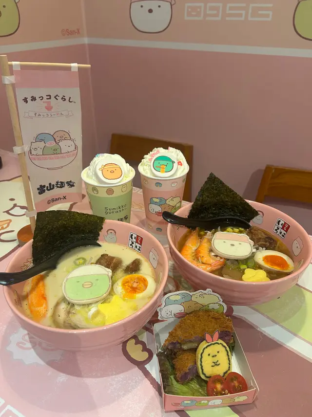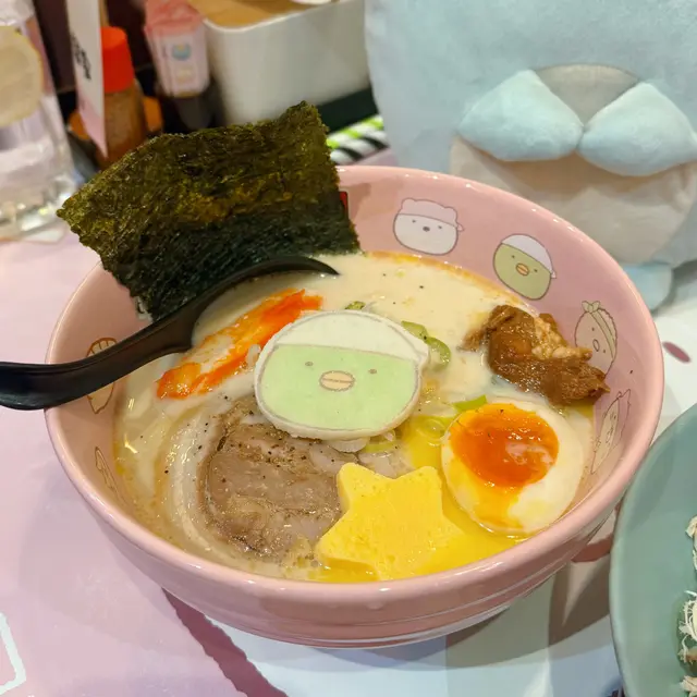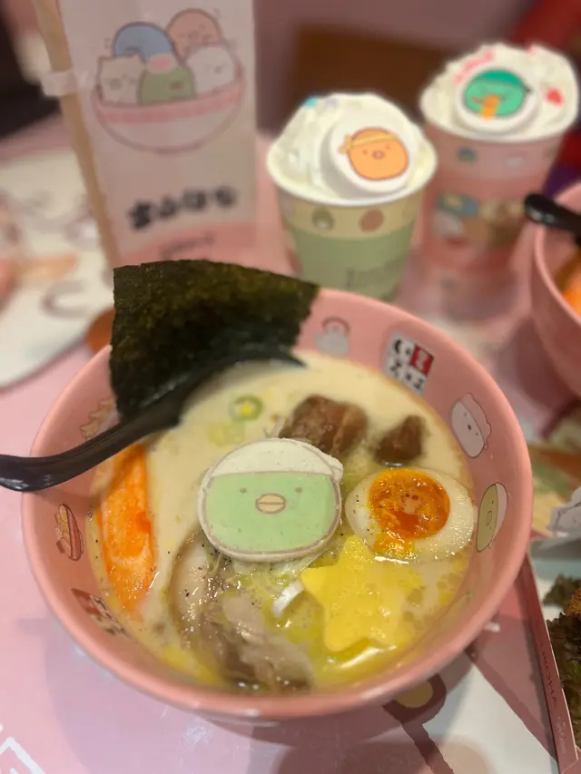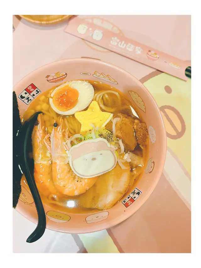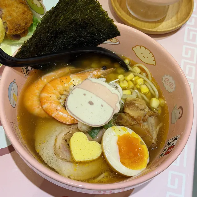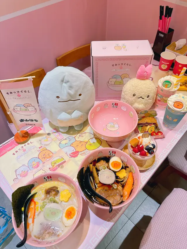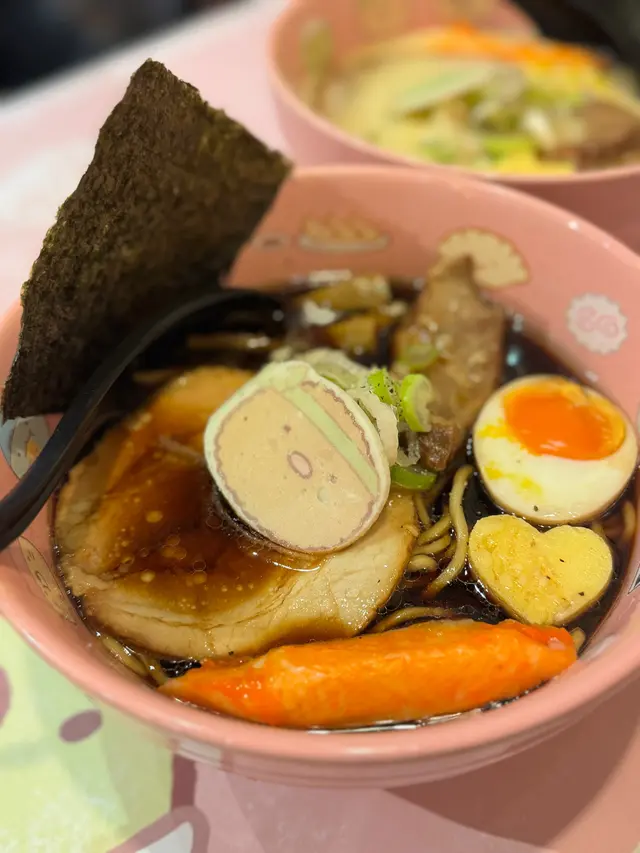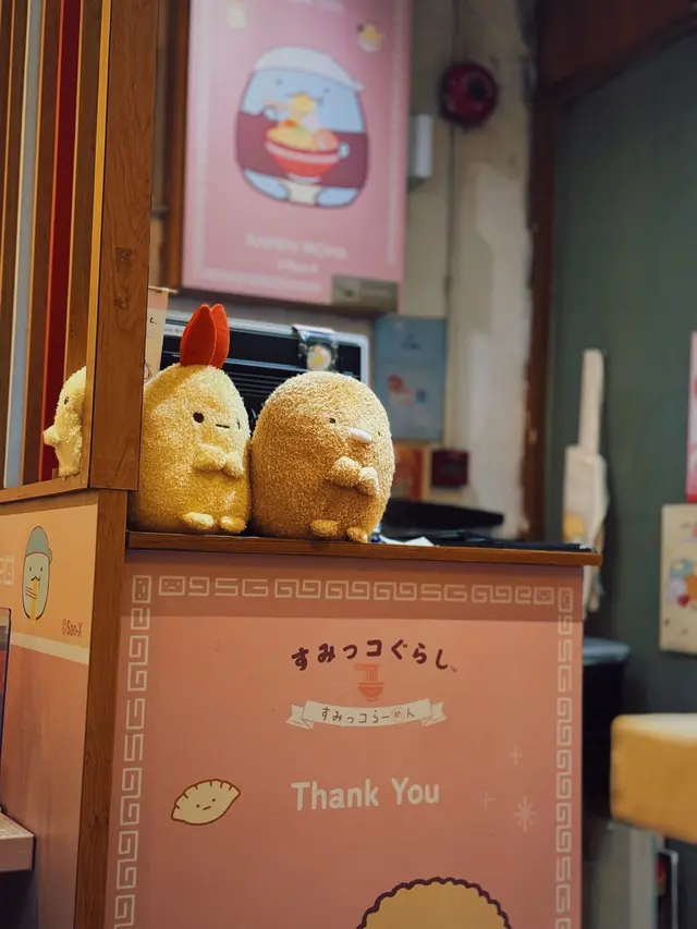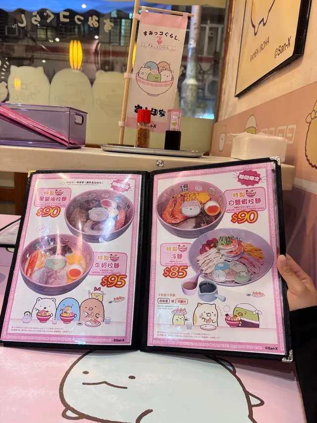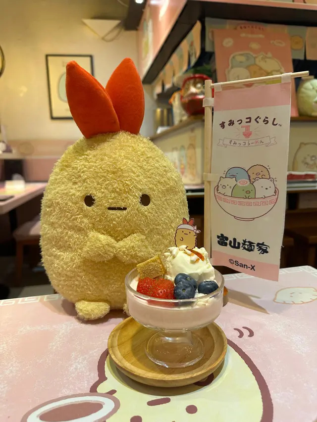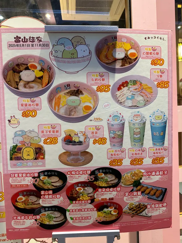 富山麵家🟥@ramenirohahk未行近已經見到門口嘅「角落生物」👾 全店粉紅色裝潢🩰 大公仔坐陣陪食拉麵🧸 連牆身餐枱、紙杯、食物都係角落生物主題,名副其實「生物遍佈每一個角落」🪤期間限定拉麵、小食、飲品、甜品樣樣都有,梗係全 set 嗌晒嚟試🤓 製作有心機,唔會下下插張卡通紙牌就算🔖呢間喺日本東京拉麵Show攞過五連冠🏆 雖然今次主打「角落生物」打卡,但拉麵唔係得個樣咁簡單🍜特製黑醬油拉麵⚫️特製白鹽蝦拉麵⚪️得獎黑白拉麵🎖️ 口味風格完全唔同。黑醬油味重口味啲🐦⬛ 麵身偏粗帶啲嚼勁,最得意嘅自家製角落生物魚蛋🍥個碗仲印咗食住拉麵嘅角落生物同餐廳名,官方聯乘限定款。 Fans仲可以額外購買呢個拉麵碗同環保袋💞,全部都有官方授權銀色貼紙,可愛又有收藏價值。栗子紫薯餅 🍠紫薯蓉綿密,仲食到粒粒栗子🌰 甜香自然。仲有角落生物「蝦尾」造型嘅玉子加持🍤 超可愛!特製芭菲 🍧士多啤梨布甸🍓 雪糕🍨 脆米+年輪蛋糕+新鮮水果,一杯入面有晒甜品靈魂🍭特製荔枝椰果梳打🥤特製青蘋果椰果梳打🍏厚cream加心心星星sprinkles💗 5款印上角色樣嘅棉花糖隨機擺放,有種抽盲盒嘅期待💫串燒雞軟骨🍢無論係角落生物迷嚟朝聖定係純粹想食碗靚拉麵,呢間都絕對值得一試⚠️ 記得要把握期間限定最後一個月衝刺,錯過就冇啦💨…查看更多
