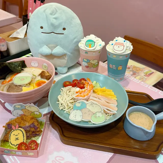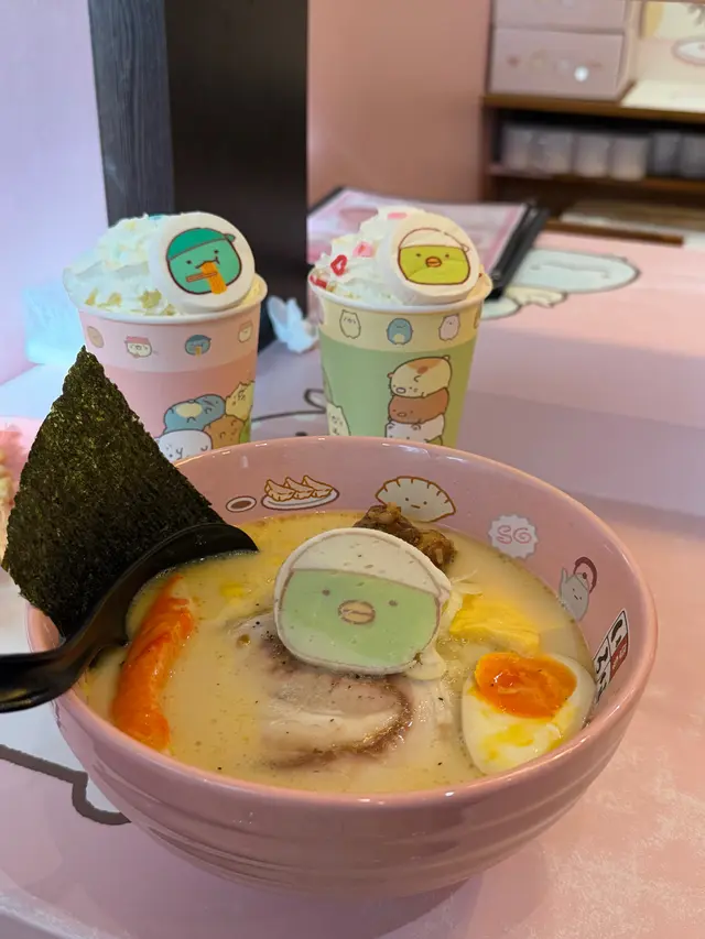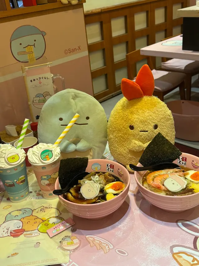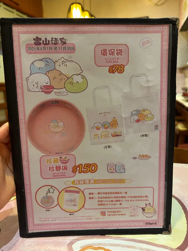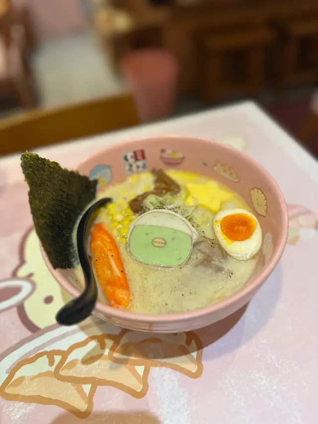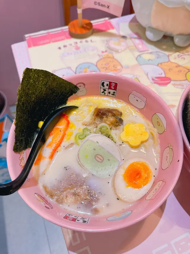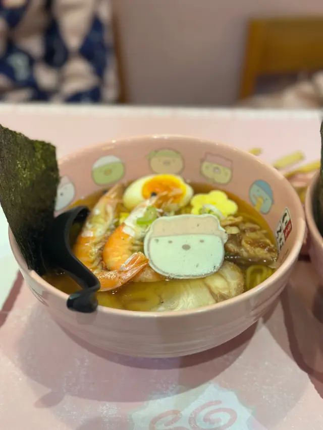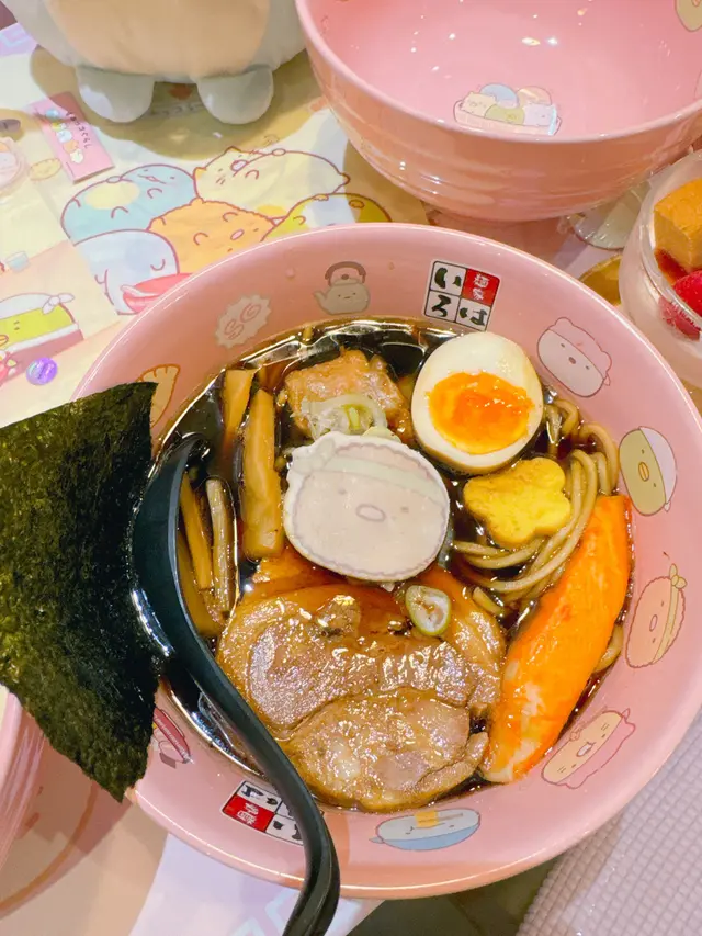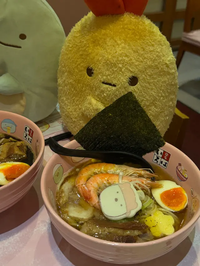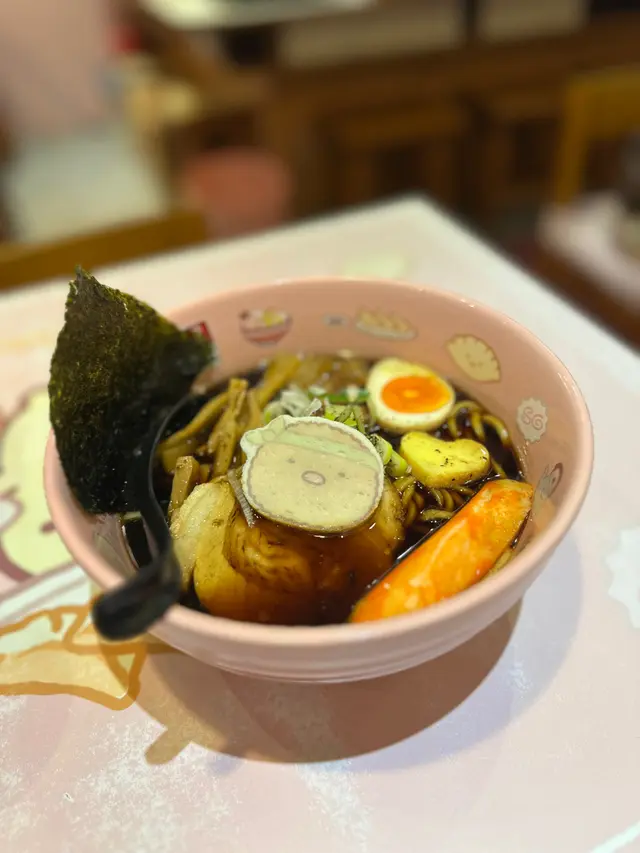 富山麵家🟥@ramenirohahk未行近已經見到門口嘅「角落生物」👾 全店粉紅色裝潢🩰 大公仔坐陣陪食拉麵🧸 連牆身餐枱、紙杯、食物都係角落生物主題,名副其實「生物遍佈每一個角落」🪤期間限定拉麵、小食、飲品、甜品樣樣都有,梗係全 set 嗌晒嚟試🤓 製作有心機,唔會下下插張卡通紙牌就算🔖呢間喺日本東京拉麵Show攞過五連冠🏆 雖然今次主打「角落生物」打卡,但拉麵唔係得個樣咁簡單🍜特製黑醬油拉麵⚫️特製白鹽蝦拉麵⚪️得獎黑白拉麵🎖️ 口味風格完全唔同。黑醬油味重口味啲🐦⬛ 麵身偏粗帶啲嚼勁,最得意嘅自家製角落生物魚蛋🍥個碗仲印咗食住拉麵嘅角落生物同餐廳名,官方聯乘限定款。 Fans仲可以額外購買呢個拉麵碗同環保袋💞,全部都有官方授權銀色貼紙,可愛又有收藏價值。栗子紫薯餅 🍠紫薯蓉綿密,仲食到粒粒栗子🌰 甜香自然。仲有角落生物「蝦尾」造型嘅玉子加持🍤 超可愛!特製芭菲 🍧士多啤梨布甸🍓 雪糕🍨 脆米+年輪蛋糕+新鮮水果,一杯入面有晒甜品靈魂🍭特製荔枝椰果梳打🥤特製青蘋果椰果梳打🍏厚cream加心心星星sprinkles💗 5款印上角色樣嘅棉花糖隨機擺放,有種抽盲盒嘅期待💫串燒雞軟骨🍢無論係角落生物迷嚟朝聖定係純粹想食碗靚拉麵,呢間都絕對值得一試⚠️ 記得要把握期間限定最後一個月衝刺,錯過就冇啦💨…查看更多