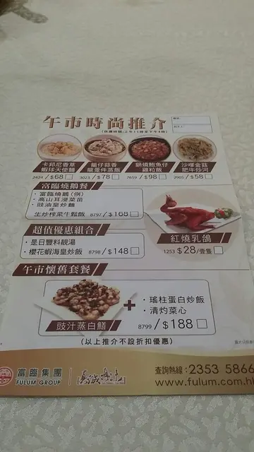 古綿馬拉糕: 金黃色馬拉糕一向都係老公最愛,糕點熱呼呼,而且好軟熟,層次分明,佢最中意就係食邊位,甜度亦適中。四寶滑雞扎: 四寶包括火腿,冬菇,棉花(魚肚)同雞件。厚厚既火腿,加上大大既冬菇,爽口魚肚再以腐皮包住,札成一卷。火腿咸咸地,雞件就油左d,令腐皮索晒d啦!北菇棉花雞: Unexpected!棉花雞底居然係一堆芋頭,起碼有成四,五件,宜家食棉花雞還是芋頭?味道同雞札差唔多,但都係比較油,早知係食芋頭我淨係叫雞札算啦!極品燒鵝瀨粉: 大大碗十分超值!14.8咋!有六件燒鵝,仲有菜食tim!燒鵝皮脆肉嫩,啲肉好有味,唔霉又唔韌,fit晒一人份量。…查看更多