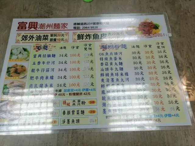 富興潮州麵家 (西環) 網址: https://s.openrice.com/QrbS0zDk3W0 地址: 香港西環西營盤德輔道西231號地舖 電話: +852 29649838