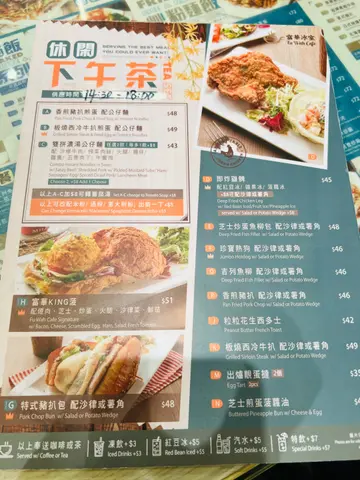 茶餐廳位於尖沙嘴東,店面明亮、用餐空間座位寬敞;落單快,上菜也快;我們三人點了三份下午茶餐,餐點份量實在且味道有水準。燒鴨飯是店家招牌之一,鴨皮烘得乾爽,肉切得厚,油香落在白飯上,配幾截菜心,基本搭配味道穩陣。星洲炒米一大盤,絕對對得起定價!咖喱味不搶,微辣,叉燒絲與其他配菜落手毫不吝嗇,整體炒得乾身不油膩。豬排包(超乎我意料的好吃!!)用的是芝麻漢堡包,邊位烤得微焦,脆脆的。裡面夾上整片厚切豬排,搭配番茄、生菜與特調醬汁,豬排調味好熟度足,肉質結實但不會硬邦邦的;搭配厚切薯條外脆內粉,趁熱吃最好。凍鴛鴦凍檸茶的茶底好,喜歡。總體來說,以價格與份量來說,這店是靠得住的一間街坊茶記。逛街想吃得快、吃得飽,來這裡絕對不會失望!…查看更多