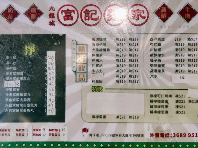 富記麵家 (灣仔) 網址: https://s.openrice.com/QrbS0x6C900 地址: 香港灣仔灣仔道177-179號保和大廈地下6號舖 電話: +852 98878263