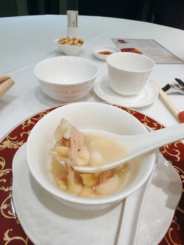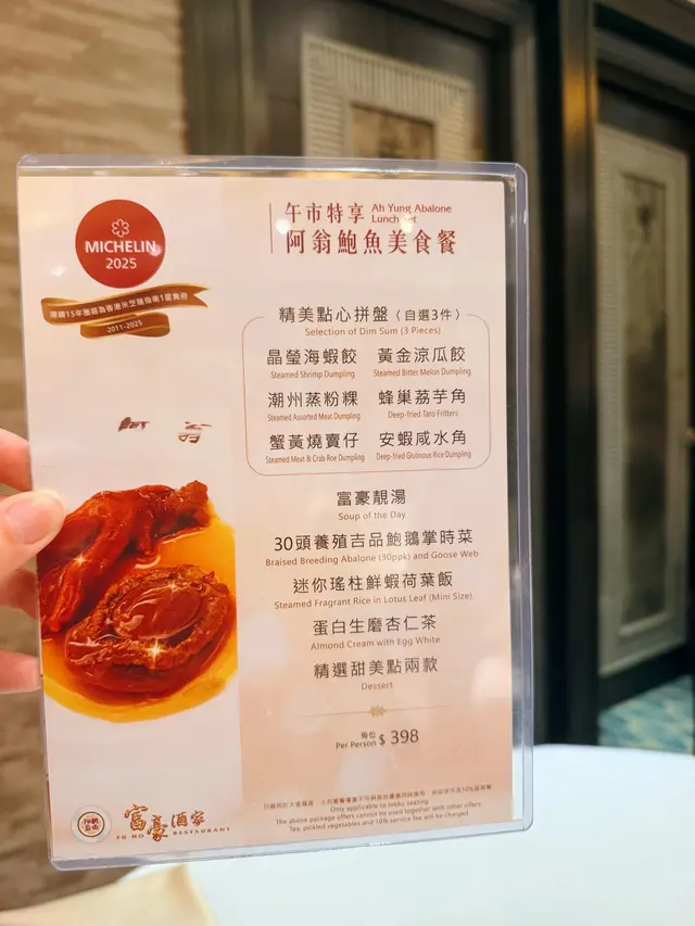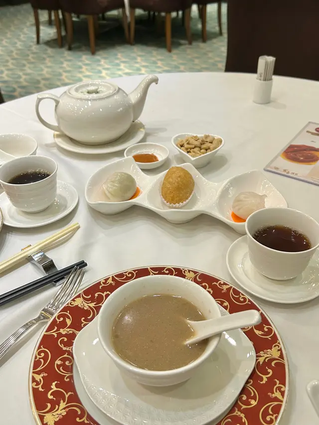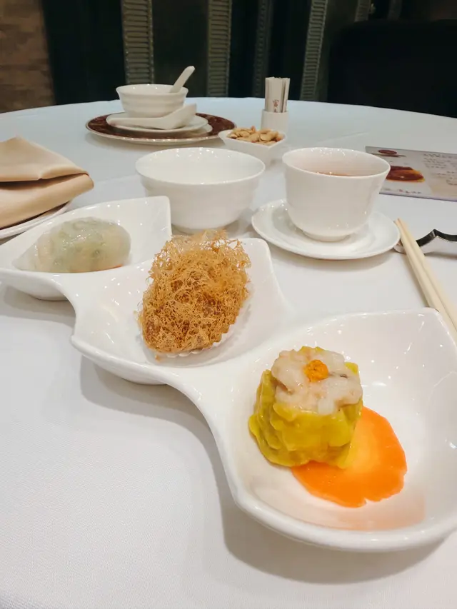 早前曾與友人在此飲茶,點心水準不錯,而且有很多食品未及品嚐,因此特意再訪。食府裝修雅緻,空間感不錯,當天有很多食客,但卻不嘈吵,大概這裡的客人都非常自律,不想影響他人。蒸鵝掌是比較少見的點心,鵝掌大概是先炆煮然後再蒸,鵝掌入味之餘,口感也很好,糯中帶嚼勁。這裡的乾蒸牛肉賣是吃過的最佳之一,燒賣外型飽滿,燒賣皮非常薄,可清晰看到滿滿的牛肉餡,肉饀牛味香濃,鮮嫩多汁,醮小量喼汁,酸香味美。蝦餃不負晶瑩之名,餃皮晶瑩透亮,餡料同樣吸睛,鮮甜爽彈蝦仁加上青鮮筍粒,簡單的調味便造就一籠美味的蝦餃。鯪魚球口感鬆軟,相信廚師摔打魚肉的技巧很好,使得鯪魚球不會過於緊實,魚肉內拌入了臘腸碎和蝦米碎,令味道更豐富。店家以鮑魚及海味馳名,因為想吃點心而沒有揀鮑魚套餐,所以點了有鮑魚和花膠的雞扎,雞扎味道很好,然而鮑魚的質素一般,但食府有另一款的鰵魚雞扎,價格未及鮑魚雞扎的一半,相對而言,更為划算。傳統叉燒包是閨蜜的至愛之一,卻不是我的一杯茶,因此平時甚少點選此物,但名店出品可作例外。這裡的叉燒包汁醬與肉餡的比例恰好,叉燒少肥多瘦,包子軟綿,是一個上等的叉燒包。腸粉軟滑帶韌性,蝦仁不是很大顆,然而鮮味濃郁,配以咸香濃稠的豉油汁,味道很好。…查看更多
