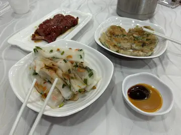 煎腸粉有好多蝦米,煎得非常之香。加了豉油增添了不少風味,如果點甜醬及麻醬,味道更加好。涼瓜煎魚餅很有彈性,涼瓜少少苦,魚餅不會太咸。叉燒肥瘦均勻,味道甜美。炒手大大粒,香口,不會太辣,肉質有彈性。蔬菜有菇類及其他配菜,還有湯汁,整體唔錯。叉燒包很鬆軟,叉燒少肥肉,甜甜的整體味道唔錯。伊麵很大碟,炒得很香,很乾身。