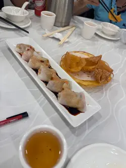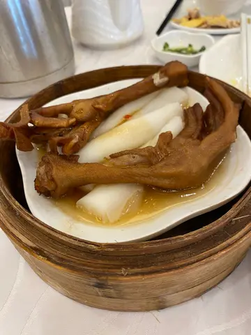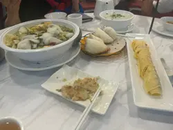 雪山叉燒包圓轆轆白雪雪,裡面啲叉燒有好多,很好味。涼瓜魚餅彈牙,有清新嘅涼瓜味。酸菜魚湯米線既酸菜很好味,魚片薄薄,有咬口,米線長長嘅,有米味。中山甜薄撐新鮮得嚟有一種沙糖加花生既味道及口感。石鍋腸粉每條都炒得很平均,美味。鍋貼大大隻,又多肉汁。燒賣彈牙又入味。紫薯包餡料豐富,又不會太甜。花旗參蝦餃有濃濃既花旗參味,蝦餃肉很彈牙。春風得意腸既脆脆內餡與肉鬆和腸粉皮配合得很好。伊麵炒得很乾身,有菇類及雜菜,很好味。白菜炒得非常之唔錯。炸蝦多士林左千島醬之後味昇華左到另一個極致。腸粉同鵝掌配搭得好新穎。