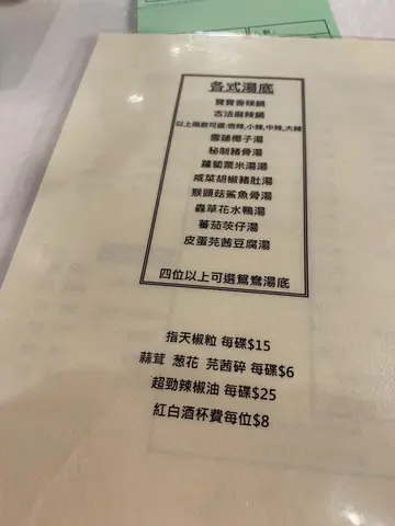 整體火鍋配料很滿意。。雖然上菜人手不夠。。。但中後段速度就好一點。。而火鍋醬料的指天椒🌶️十分貴。。一碟竟要$15。。我最不能接受就是他的廁所🚽。。。。竟然是男女共用的。。場面實在尷尬🙈🙈🙈。。。(舊式商厦沒分男女)另外去到買單佢哋係有卡機不過估唔到要$1000先至可以碌卡。。。不是吧?。。我從來去其他餐廳食嘢未試過要求$1000以上先可以碌卡囉。。不如直接取消部卡機吧。。門口又冇貼上收現金。。買單果刻真係有點狼狽。。。現代人很多付款方法真係未必有現金在身…查看更多