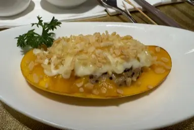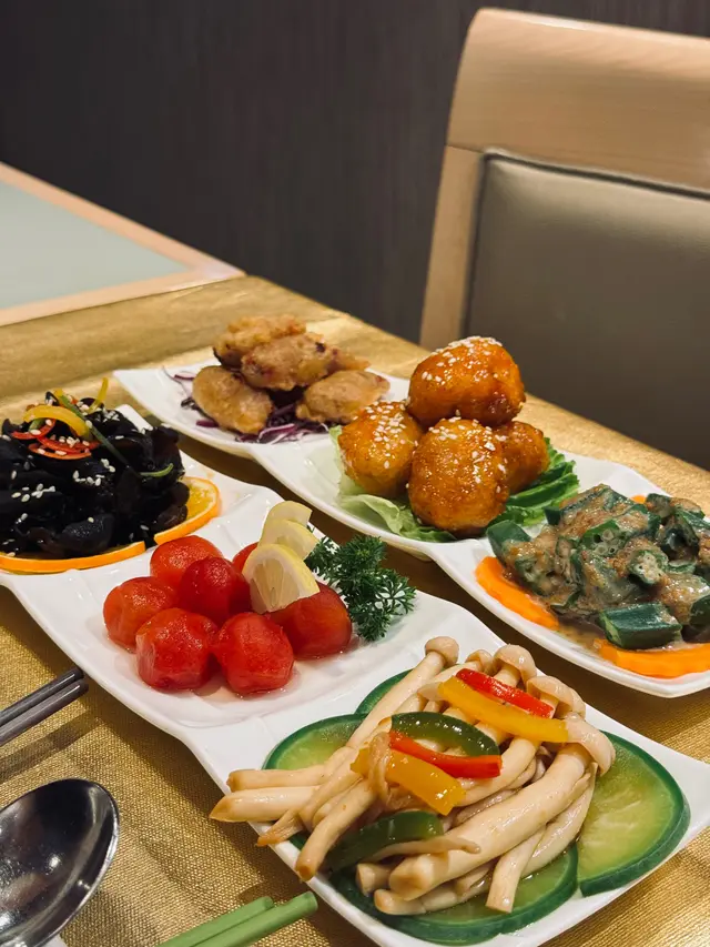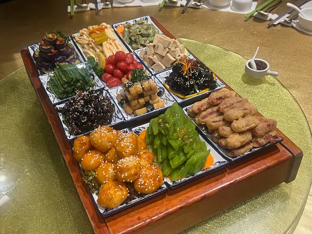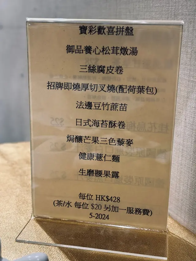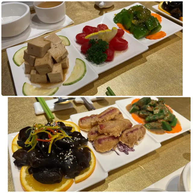 友人很喜歡這裏的素菜,便相約一起再次品嚐。館子不大也不小,大概有十張餐枱,佈置明亮光鮮。職員的態度熱誠,尤其是經理先生,整頓飯的流動均由經理先生操控。館子只有一個餐牌,菜式會每月更換。出菜時,店家會盡量配合全店的客人一起出餐,以確保質素。💢寶彩歡喜拼盤拼盤由色彩繽紛的六小碟組成,包括風味雲耳、酥炸紅菜頭、柚子涼瓜、涼拌海鮮菇、話梅蕃茄仔及麻醬秋葵。六小碟各有特色,最喜歡的是酥炸紅菜頭和話梅蕃茄仔,因為剛炸好的紅菜頭香甜酥脆,而蕃茄仔則酸甜醒胃。💢御品養心松茸燉湯燉湯用的菇菌湯料都是佳品,味道甚至比一些肉湯還鮮味,喝得一滴不剩。💢三絲腐皮卷腐皮卷是意想不到的柔軟,豆味清香,細問之下,腐皮是店家找專人為其製造,因此特別美味。每月菜單也有一些恆常存在的菜式,包括燉湯和一些招牌菜式💢招牌糖醋咕嚕咕嚕是新鮮猴頭菇,炸過的咕嚕外脆內濕潤,與肉食的咕嚕相比,更為健康。💢招牌即燒厚切叉燒(配荷葉包)素叉燒很多素食店也有提供,這裡的素叉燒同樣以麪根仿製,叉燒的溫度恰好,香甜帶一點油膩,十分適合跟荷葉包搭配同食。石榴果醋不在菜單之內,店家會在中場把一小杯果醋送到食客手中,果醋酸甜醒胃,目的是清除口腔中殘留的氣味,迎接比較清爽的菜式。💢法邊豆竹蔗苗法邊豆和竹蔗苗以簡單的方法烹調,盡顯兩樣食材的本味,竹蔗苗比竹筍清鮮,外皮亦沒有粗粗的纖維,是一次嶄新的素菜體驗。💢焗釀芒果三色藜麥焗釀芒果是本日的生果,熟透的芒果非常香甜,內饀的藜麥則粒粒分明,口感微微爽彈,面層鋪了厚厚的沙律醬為淡味的藜麥增添味道,但卻令我覺得有點膩。💢節瓜銀芽菇絲炆米粉炆米粉的材料不算豐富,但亮點在於米粉的口感,米粉軟滑卻不易斷,再次細問才得知米粉也是找專人為店家製造,可知店家在菜式製作上的用心。💢生磨腰果露腰果露非常幼滑,腰果味香濃,甜度適中。…查看更多