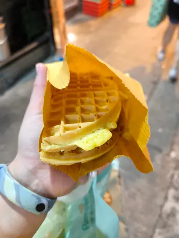熱辣辣既格仔餅拎到手上, 好正。 D醬多到流出黎。 好食好食