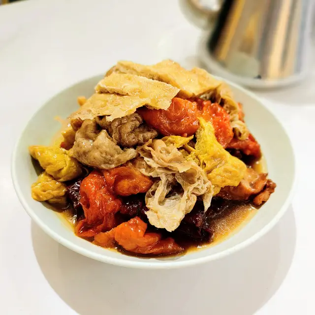 《寶蓮素食》可以說是素食自助餐的始祖。許多年前我一直對荃灣眾安街的這一家素食店的認識,除了食粵式傳統齋菜之外,就是他們的午市放題。如今,《寶蓮素食》,搬了出大馬路 (沙咀道),把原先剔紙仔的放題素食改成真正的自助餐。週末的其中一天,我同太太二人,就於下午茶時段來到,來一餐吃到飽。先付款,後入座,現在的《寶蓮素食》已經同一般的素食自助餐沒太大分別。不過,《寶蓮素食》始終是一做做傳統粵式齋菜的餐館。所以,自助餐的食物選擇,好多都好啱胃口。單是眼前的炒飯同炒麵,炒河粉同炒腸粉。已經令我垂涎三尺。最開心的,就是這兒不是以煎炸食品為主,也不是什麼東西都是芋頭、薯仔、蕃薯,粥粉麵等等吃一、兩件就會飽死你的東西。而且,甜點,沙律,凍食前茶的選擇都多羅羅,真的照顧到不同飲食所需的人士。我同太太都分了好幾 round 來取食。來過多次舊版本的《寶蓮素食》,我最喜歡食的,就是他們的齋鹵味了。此外,煎堆,咸水角,芋角這炸點三寶,也是令人感開心的。而當日,我更愛上他們的南乳炆蓮藕。第二碟,主要吃的是炒麵,炒河粉,腸炒,涼瓜同繼續吃齋鹵味。而這也是我去傳統粵式齋舖食飯時,最喜歡吃的東西。之後,是甜品時間,但,真正的主角其實是錦鹵雲吞。錦鹵雲吞白脆,更可以說是酥香,加酸甜汁來吃,是咸點,也是甜點。這錦鹵雲吞,每一次炸起出場,就立即被大家掃空了,很不容易才拿到兩件。我只拿了半碗素碗仔翅,因為實在吃得太飽了。這碗仔翅,最多的配料是木耳,味道雖然沒比街邊的精彩,但也夠香,口感豐富。當然,也真的有爽爽口的素在內啦。加點醋,可口。這雖是下午茶,但食物選擇幾乎等同午餐、晚餐。非常豐富的素食自助餐,既好食,又吃得飽。滿意兼滿分。…查看更多