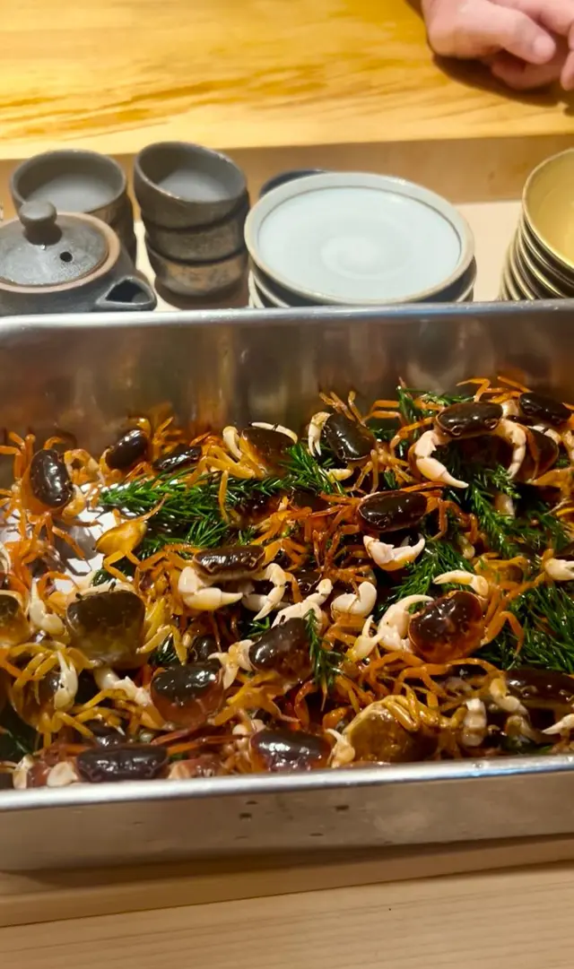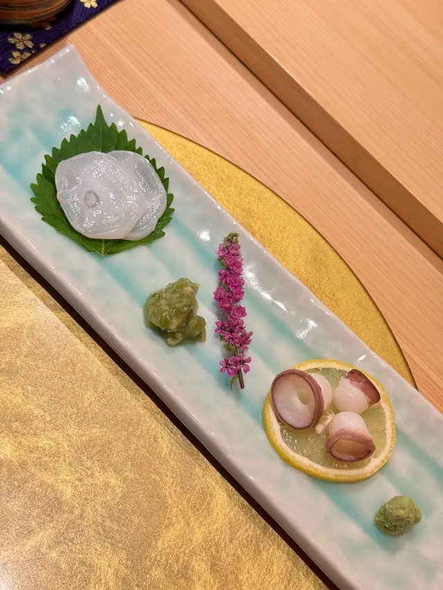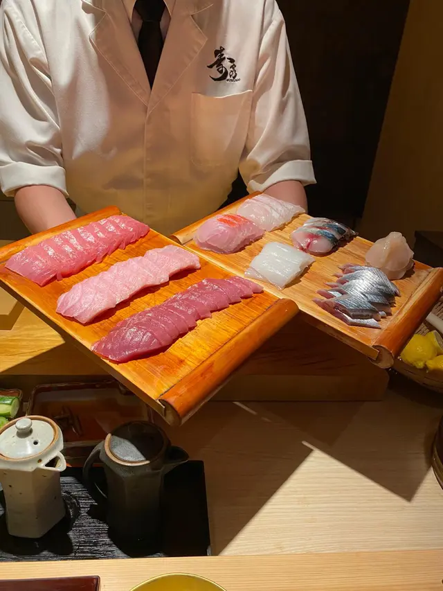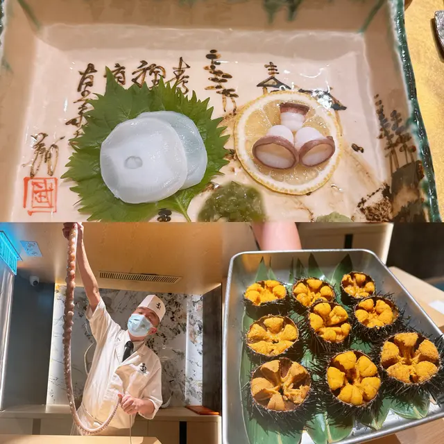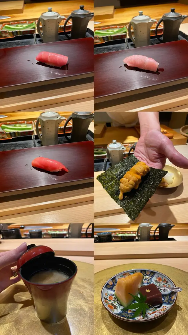 呢間絕對係氣氛超好 的高級Omakase 🍣師傅會為每位客人逐一介紹菜式!!!而且專業講解得非常好!😎每樣選用食材都會介紹來源地及口感味道等!客人在過程當中會了解到當造的時令海產非常喜歡拖羅跟成粒紫海膽!🫶🏻🫶🏻🥰 超好味!!有預算嘅朋友可以食吓!🤩前菜:·宮崎縣沼蟹 (有啲蟹膏鮮甜好味香脆)+昆布卷 · 腐皮卷·長野縣露筍 + 鹽醃魷魚 (超級有鮮味!)·鰻魚牛蒡卷主菜:·鱧魚清湯 帶點青檸香氣、上面梅醬 (呈啫喱狀)一粒粒啫喱狀透明綠色是蓴菜本身是植物離開水面之後就會變成啫喱狀!🙆🏻♀️口感非常特別!好像吃蒟蒻般🤣🤣🤣鱧魚配梅醬同樣很開胃!·山口縣鱸魚 (配酸汁、蔥、蘿蔔蓉)超開胃、配紫蘇葉食就好清香!·富山縣白海老刺身 (每一條都係細細隻蝦仔)(第一啖建議不沾醬油跟山葵食!感受鮮味!)·炸白海老 (帶咸香!)·關鯖 ·水八爪魚 配醬油漬山葵·岩手縣紫海膽 (口感清甜!) (體驗感滿滿!)·白燒鰻魚 (我最愛!)·白粟米天婦羅 (爽脆非常)·四國愛媛縣鮎魚·金目鯛 (師傅用滾水淥過魚皮)·兵庫縣甘海老 (鮮甜!)·北海道北寄貝 (超級爽口!) (顏色比較不同沒有雪藏過!😍😍)·北海道秋刀魚 肉質柔軟(加入了埼玉縣淺蔥在裏面!蔥香四溢!)·和歌山吞拿魚腩 (中拖羅)·和歌山大拖羅 (師傅有用鹽降低油香!)·和歌山赤身吞拿魚醬油漬 (頭3甲受歡迎壽司🍣❤️❤️)·北海道馬糞海膽手卷 (帶點淡淡海水味)· 季節性魚湯·自家製紅豆糕 (表面有啲金箔!唔會好甜、入口即化!)·北海道富良野哈密瓜 (多汁清甜)…查看更多