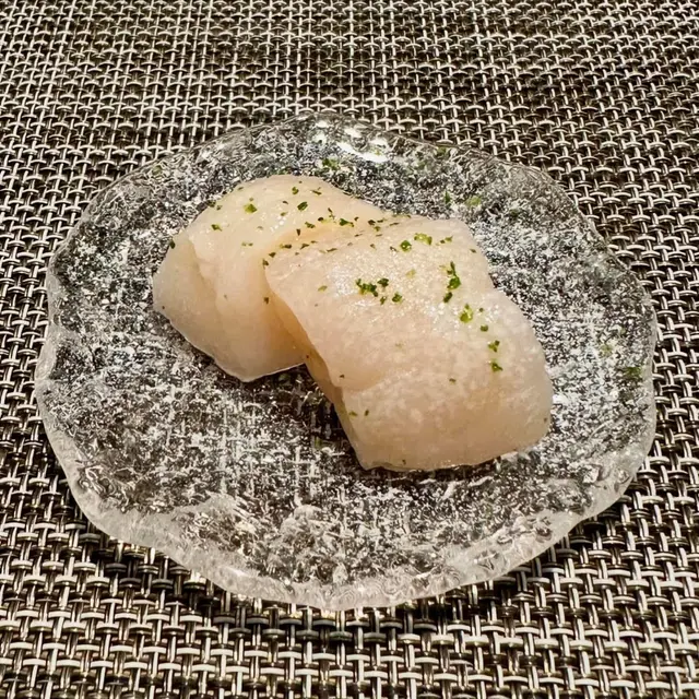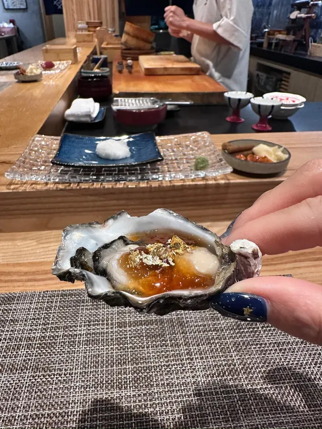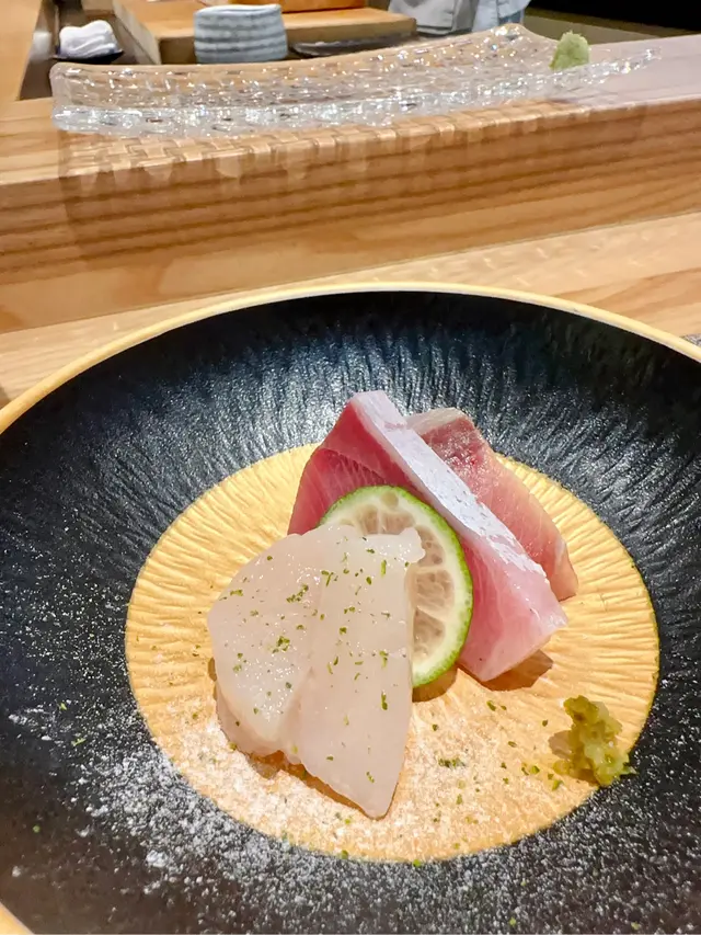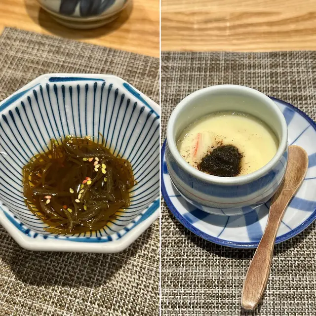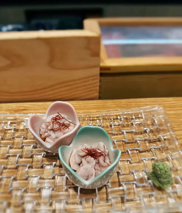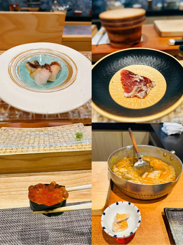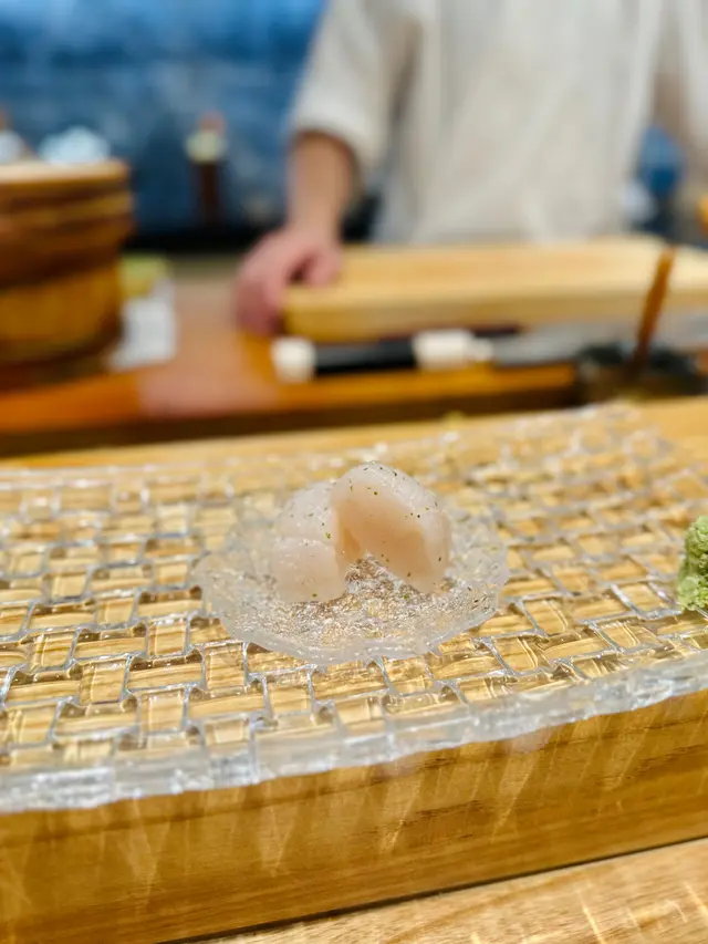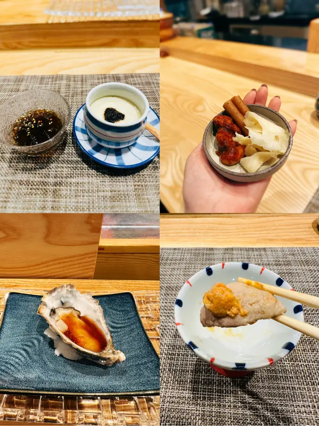 幾年前來過 今天朋友專程入元朗跟我再吃這間Omakase 我們選了$880的lunch set 有前菜 刺身 壽司得共15品前菜先來了黑松露茶碗蒸及水雲醋物 水雲醋物很特別 酸酸的很開胃 打開了味蕾🔸北海道帶子 上面有點柚子岩鹽能提升帶子鮮甜度🔸兵庫縣的生蠔 加了點酸汁 雖然不算大隻但蠔肉厚身清甜🔸🌟銀鱈魚的鱈魚白子 師父先將白子面燒焦過 配上幾條辣椒絲 很好吃 個人認為比生的白子更好吃🔸秋刀魚是Seasonal食材 上面的那片是原味 後面那片則有燒過會更香 另外配薑蔥可一起吃🔸鮟鱇魚肝 見到有橙色點點的是它的油脂 口感綿滑之後是壽司環節 師父提醒所有壽司已有豉油或Wasabi 不需額外調味🔹鰹魚 少少偏酸 很適合作為第一件打頭炮🔹中拖羅 肉質軟滑🔹醬油漬赤身 血含量較高 所以較深色🔹黑鯥魚 師父先燒過所以較香 而且令個皮軟身番 🔹🌟甜蝦 先打成蝦膠 加上特別調製的醬 用了幾百隻蝦熬成 好像龍蝦湯咁濃 底下的壽司醋飯先風乾完再炸 好想米通咁 好好食🔹大拖 入口即溶 是近「較」位的拖羅🔹北海道新鮮銀鱈魚 很滑身 絕對不同平日熟食的多數來自加拿大 不能生食的🔹🌟腦天 是吞拿魚天靈蓋靈的兩片仔肉 加了點柚子胡椒 味道慢慢散發出來最後是2款馬糞海膽壽司:🔹黃海膽 入口甜 但味道很快散 食落好像雪糕般🔹赤海膽 味道再濃點 keep在口腔的味道會持久一點最後上埋湯及焙茶布甸 便超級滿足地完結這個omakase之旅…查看更多