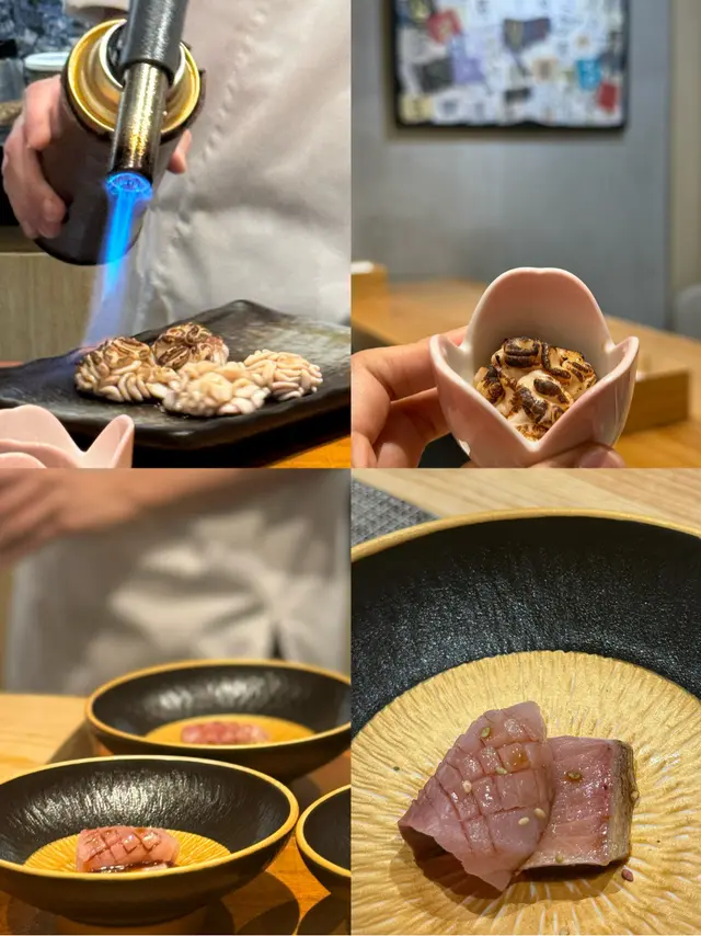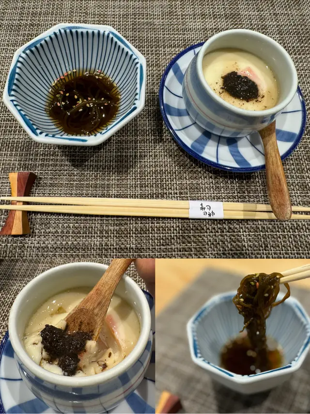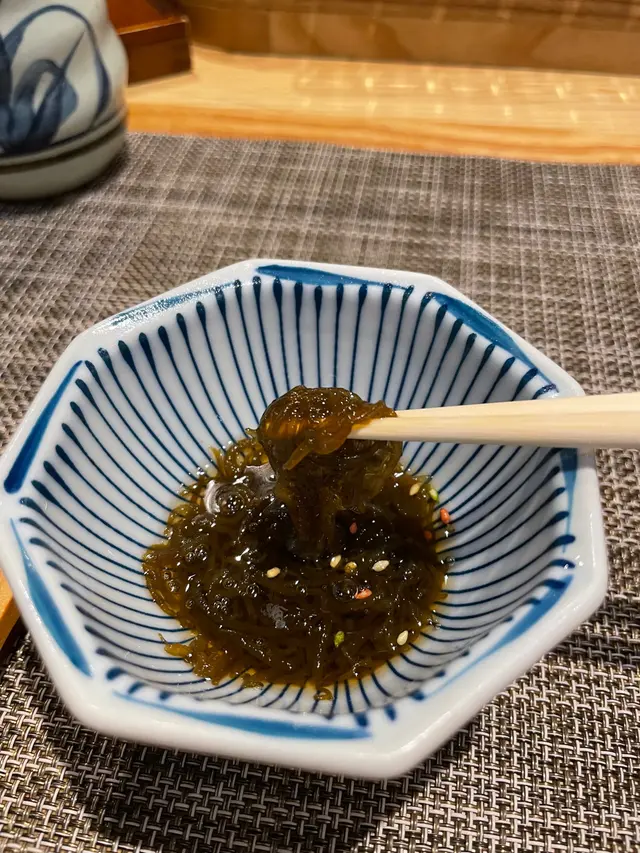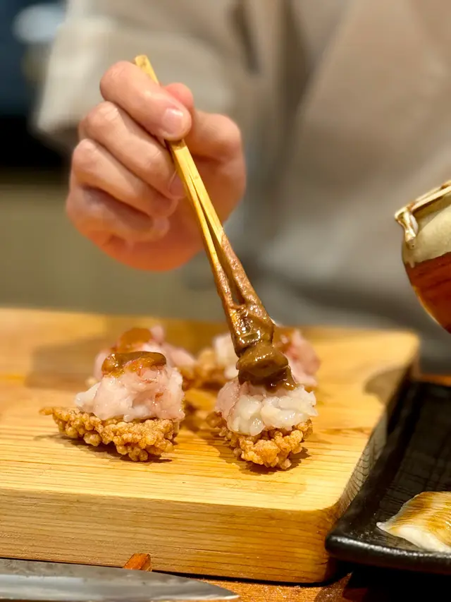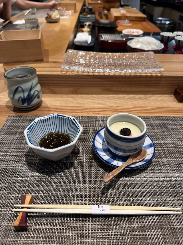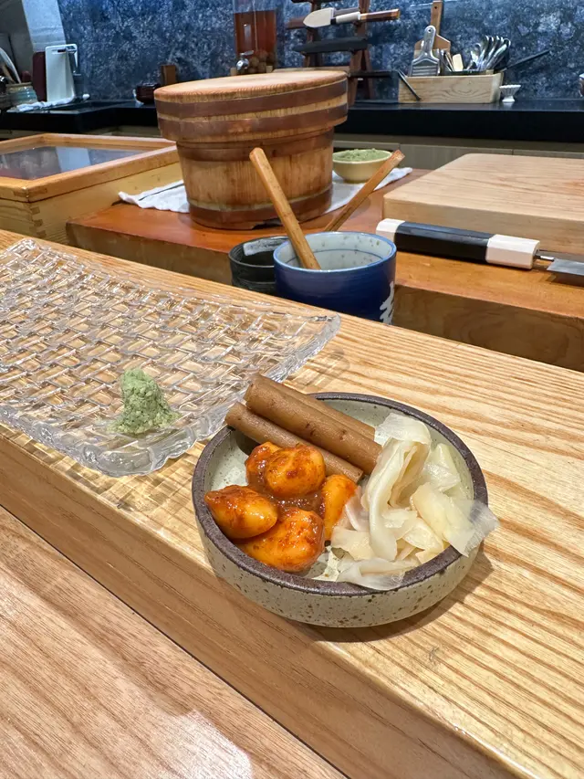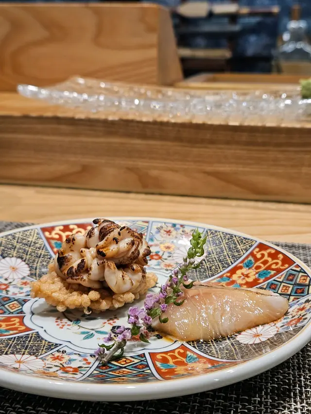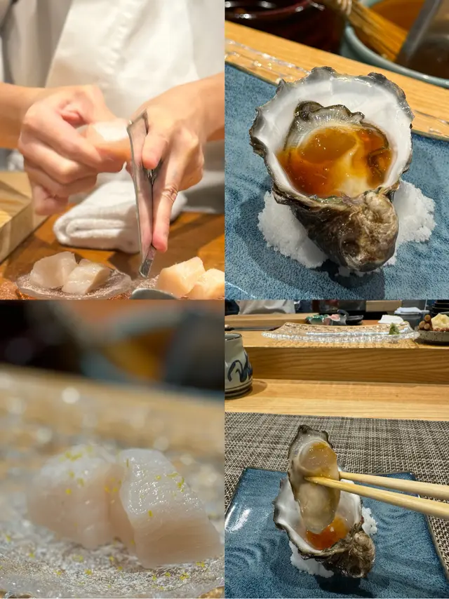 幾年前來過 今天朋友專程入元朗跟我再吃這間Omakase 我們選了$880的lunch set 有前菜 刺身 壽司得共15品前菜先來了黑松露茶碗蒸及水雲醋物 水雲醋物很特別 酸酸的很開胃 打開了味蕾🔸北海道帶子 上面有點柚子岩鹽能提升帶子鮮甜度🔸兵庫縣的生蠔 加了點酸汁 雖然不算大隻但蠔肉厚身清甜🔸🌟銀鱈魚的鱈魚白子 師父先將白子面燒焦過 配上幾條辣椒絲 很好吃 個人認為比生的白子更好吃🔸秋刀魚是Seasonal食材 上面的那片是原味 後面那片則有燒過會更香 另外配薑蔥可一起吃🔸鮟鱇魚肝 見到有橙色點點的是它的油脂 口感綿滑之後是壽司環節 師父提醒所有壽司已有豉油或Wasabi 不需額外調味🔹鰹魚 少少偏酸 很適合作為第一件打頭炮🔹中拖羅 肉質軟滑🔹醬油漬赤身 血含量較高 所以較深色🔹黑鯥魚 師父先燒過所以較香 而且令個皮軟身番 🔹🌟甜蝦 先打成蝦膠 加上特別調製的醬 用了幾百隻蝦熬成 好像龍蝦湯咁濃 底下的壽司醋飯先風乾完再炸 好想米通咁 好好食🔹大拖 入口即溶 是近「較」位的拖羅🔹北海道新鮮銀鱈魚 很滑身 絕對不同平日熟食的多數來自加拿大 不能生食的🔹🌟腦天 是吞拿魚天靈蓋靈的兩片仔肉 加了點柚子胡椒 味道慢慢散發出來最後是2款馬糞海膽壽司:🔹黃海膽 入口甜 但味道很快散 食落好像雪糕般🔹赤海膽 味道再濃點 keep在口腔的味道會持久一點最後上埋湯及焙茶布甸 便超級滿足地完結這個omakase之旅…查看更多
