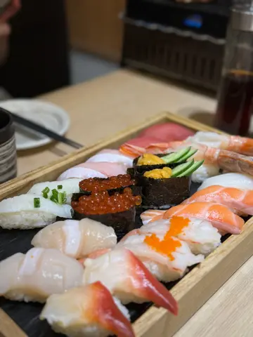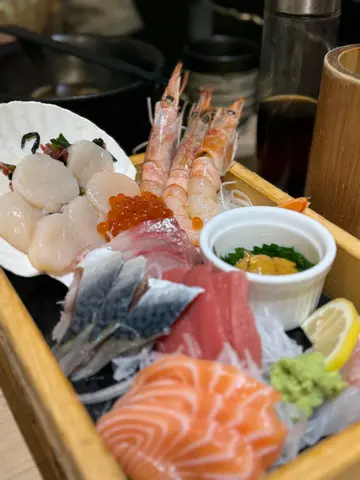 成日去開沙田嘅我都唔知原來呢度有間日本餐廳,舖頭門面有啲普通,但一入到去發現裝修得好似日本魚市場咁,好有feel!叫咗佢一個壽司拼盤,油甘魚同帶子都好出色,好新鮮,而且肉質都好好,其他就不過不失啦,海膽反而有少少失望,食落去有少少苦~另外都叫咗刺身拼盤,油甘魚、帶子、三文魚同吞拿魚都幾新鮮幾好食,其他就麻麻哋啦,尤其海膽,我諗係同壽司用同一批海膽,所以味道都係苦苦地!另外都叫咗一啲燒物,甲羅燒都好食,反而燒雜菇就普通咗啲,唔太抵食!