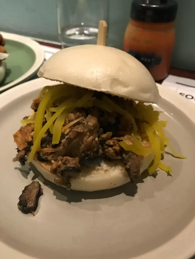🧐從來都唔鐘意食中式包嘅我,對呢間little bao 本來沒什麼興趣,不過見男朋友超讚,又陪佢食一次啦。驚喜小食炸薯條,撈左啲黑松露醬之餘仲有菇,pickle,炸洋蔥同埋一粒粒好香口又林林地嘅黃豆。一啲你諗唔到放埋一齊會咁好味,咁特別嘅食材配搭😍 好花心思(有構思)嘅食譜。我覺得佢係一碟小炒多過薯條。素食burger ,eee原來啲餡同頭先食個薯條入面嗰啲餡係類同,不過咁好味,食多少少都冇壞。至於我至憎食嘅中式包,原來配搭上咁濃味嘅餡料,都幾好,而且好易吸收哂啲汁。另一款炸雞burger ,有我最鐘意嘅coleslaw ,好好味好多肉汁,食嘅時候要好小心 ,唔係會燙親個咀小食,牛肉鍋貼😍😍😍又係另一驚喜之作,牛肉餡竟然係好似pullpork 質感嘅牛肉,應該係慢煮/燉,好有心機同誠意,而且好好味。下次再來一定會再點呢樣!…查看更多