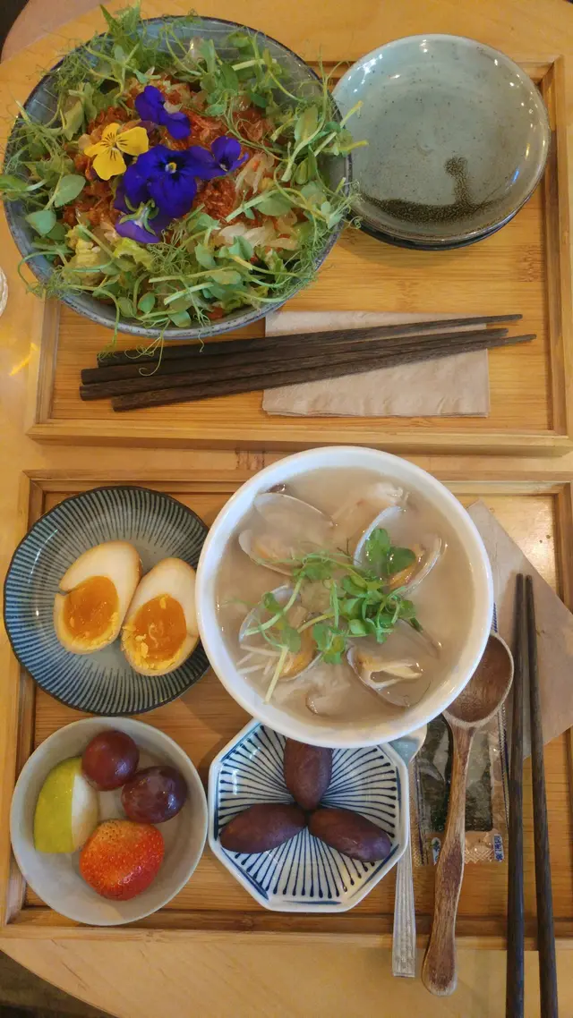 之前同閏蜜Gathering去咗呢間樓上Cafe間嘢有貓!嚇死我.....我驚貓不過朋友就好鍾意我哋叫完嘢食上留上座位坐上面係乾花做主題叫咗個花草茶,有洋甘菊、薰衣草、迷迭香……我覺得有啲怪.....特別幾種混合之後三色飯糰好有心思,啱打卡用味道偏淡,建議由左食到右左面白色係明太子飯糰,中間淡粉紅色係櫻花梅子飯糰,右面淡橙色係三文魚飯糰我覺得三文魚飯糰比較正常我覺得價錢有少少貴,share就好少少溏心蛋就唔錯,不過有少少過龍蛋汁有啲凝固,無咩流心蛋汁而雪山多士都唔錯,不過就貴少少 櫻花水信玄餅係招牌菜,口感似啫喱,份量太小豆腐芝士蛋糕最好味,佢甜而不膩 …查看更多