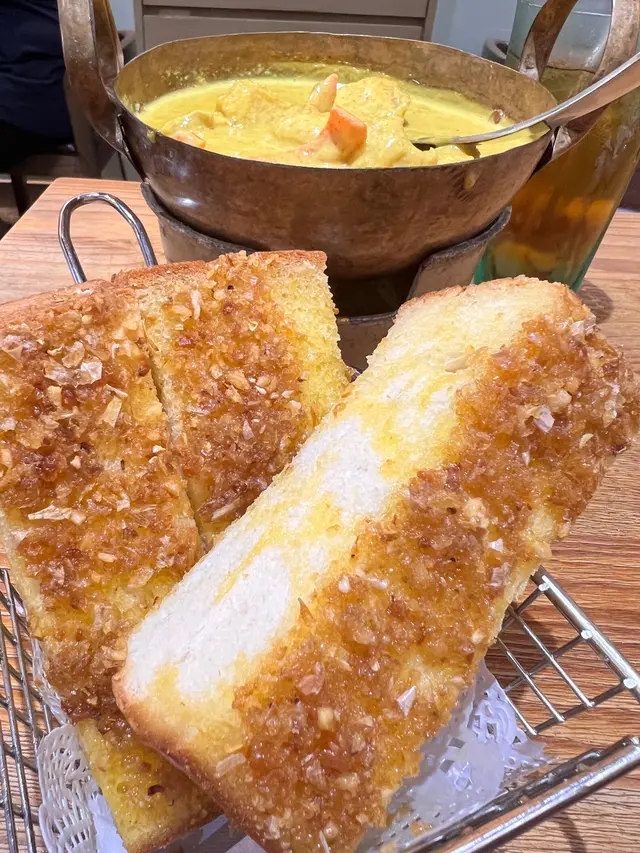之前食過小曼谷真係唔錯,佢嘅下午茶好抵食,上次見到隔籬枱食黃咖喱雞蒜蓉包,好鬼吸引,今日特登嚟食😋🐔黃咖喱雞肉配蒜蓉包$49連飲品咖喱🐔用個鑊仔+小火爐一齊熱住上,相當有誠意,雞肉份量頗多,個蒜蓉包係厚厚的蒜蓉金磚,點過咖喱汁食一流,不過個咖喱汁屬於偏甜,如果再辣少少會更加惹味🥤泰式龍眼冰 飲落相當清甜,而且仲有幾粒龍眼肉是日消費$49 非常飽肚😆查看更多