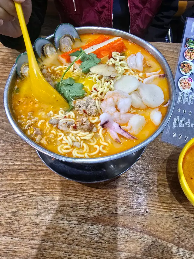 果晚想食泰國野,見哩間啲正評幾多,於是就兩個人去左試下。環境正常,無特別好坐/唔好坐。服務態度幾好本身想叫番個pad thai/ 泰式粉炒飯咁,但後來見佢有個‘’曼谷期間限定‘’ menu. 有兩個item, 分別係火山排骨同泰式冬蔭功海鮮部隊鍋。我地比個泰式冬蔭功海鮮部隊鍋吸引到,於是就叫左黎試。結果黎到係一煲公仔面上面加一啲冷藏海鮮。本身以為佢叫‘’泰式‘’,會起碼用金邊粉/河粉已經有少少失望。點知食落仲失望,冷藏嘅海鮮同個面都普通,幾大問題係個冬蔭功湯底又唔酸,又唔辣咁,完全講唔上係冬蔭功,好似自己搵個泰式公仔面落包味精都冬蔭功過佢咁,一啲都唔“泰式”。另外加左份烤餅,又係唔太香,無點調味咁。就係咁完左餐飯。查看更多