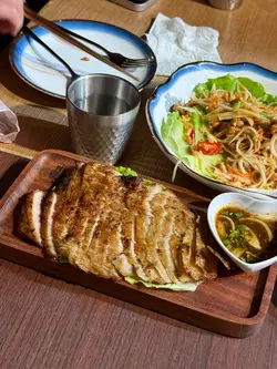 剛剛去完啟德睇完足球比賽,首選就係去九龍城食泰國菜九龍城很多泰國菜餐廳,其中一間從來未試過,見門口比較上新,所以特別去試一試結果係冇選擇錯,每樣食物都好有風味,感覺就在泰國食一樣(除咗炒河粉,用了本地的河粉)先講西冷扒,$268 絕對超值,好有牛味佢哋嘅燒雞翼,冇雪味,好好食泰式乾炒炒雞河,好有風味炒金邊粉,同泰國食差唔多兩個炒菜都好爽口生蝦刺身雖然那個醬汁不是綠色,仍然好味其他例如木瓜沙律同埋燒豬頸肉都好好味