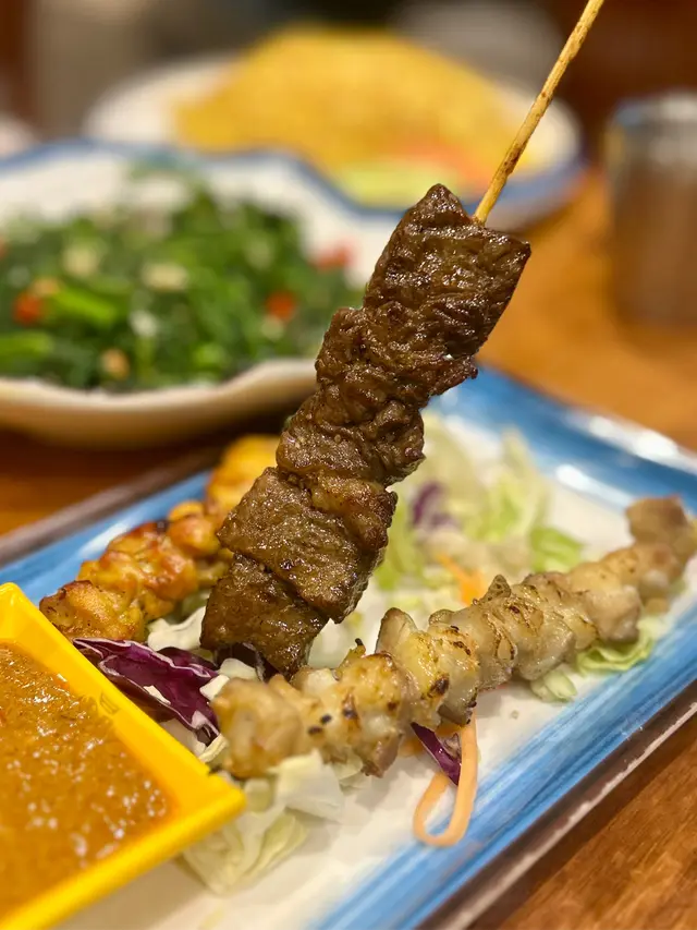 好耐之前已經食過呢間泰國菜餐廳,今日經過九龍城,即刻試吓佢嘅水準係咪keep到先🤭🔖牛肉沙嗲串燒、雞肉沙嗲串燒、雞軟骨沙嗲串燒💰22/串牛肉沙嗲串燒肉質鮮嫩,醃得啱啱好,燒烤後香氣四溢,搭配濃郁的沙嗲醬,令人無法抗拒🤤雞肉沙嗲串燒同樣出色,肉質多汁,想即刻encore🤭至於雞軟骨沙嗲串燒,外脆內嫩,口感十足🔥💫推薦指數: 8.5/10🔖泰式炸蝦餅💰98外層炸至金黃酥脆,與入面結實嘅蝦肉餡料形成對比,口感層次分明🦐食落去咔嚓咔嚓,加上泰式嘅甜酸醬,感覺就變得冇咁油膩😙💫推薦指數: 8/10🔖小曼谷炒飯💰118呢個炒飯同想像中嘅唔同,因為佢感覺有啲似蛋包飯🤓以蛋皮包住粒粒分明嘅飯粒,入面包住唔同嘅材料,例如係蟹柳、扎肉、蝦肉等等🥰好滿足啊🫶🏻💫推薦指數: 8/10🔖泰式飛天炒通菜💰108通菜口感好鮮嫩😍食落去感覺好有鑊氣!由於喺炒嘅過程加入咗辣椒同蒜蓉,所以夠晒惹味🤩💫推薦指數: 8.5/10…查看更多