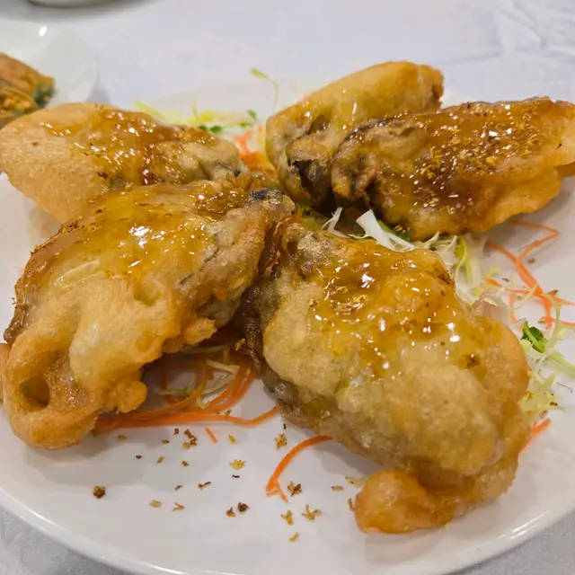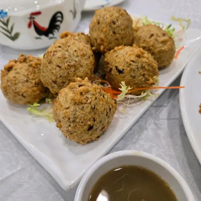 酥炸鯪魚球,豉椒炒蟶子皇配香煎米粉底