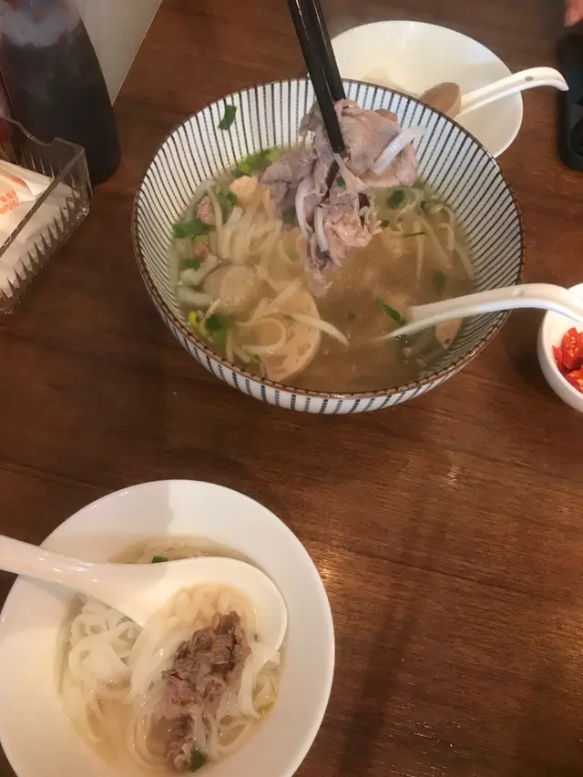 This street is conspicuous and I’m pretty sure that I seldom walked into here. This little Vietnamese restaurant is genuinely a gem. The Vietnamese rice rolls with crispy soft shell crab and lettuce salads were diamonds, 10/10 delicious and made to order. I love everything deep fried and these butter wings were absolutely a must-try. Seasoned just right, marinated with heartiness, and very juicy inside. The pho noodles were tasty, and the vinaigrette dressing was made in house, it made you want to add more while not making you thirsty. Lady boss was very friendly, chatty, good looking and kind. She served us hot soothing glasses of lemony drinks, with some fresh passion fruit seeds within! …查看更多