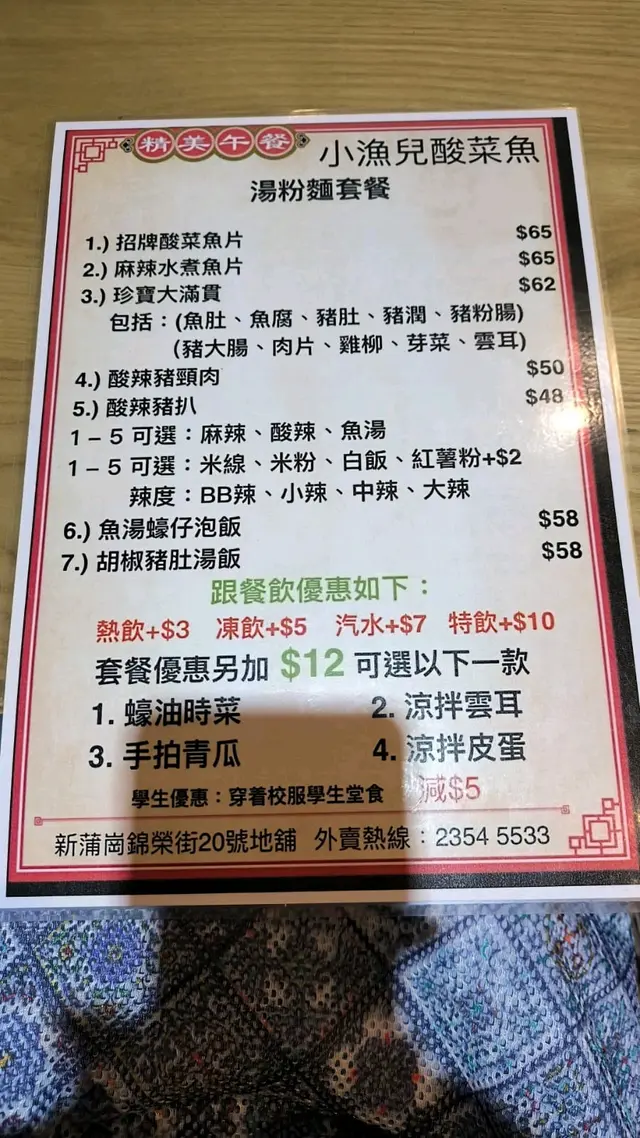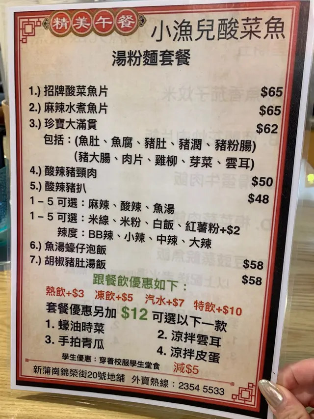 小漁兒酸菜魚米線 (新蒲崗) 網址: https://s.openrice.com/QrbS0RcWD00 地址: 香港新蒲崗錦榮街20號地舖 電話: +852 23545533