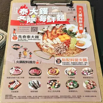 【銅鑼灣•小火山】 🐝—————————————————————經常打邊爐嘅我都係第一次食泰式火鍋,餐廳除咗有火鍋之外仲有烤肉。今次試咗餐廳新出嘅「泰大鑊海鮮麵」,由泰藉主廚處理,自家熬製冬陰功湯。🍯|泰大鑊海鮮麵|HKD 398配料相當充足:扇貝、沙白、海蝦、鮮魷魚、豬肉等等。四隻脹卜卜嘅蛋黃攪散後就可以與湯底享用。冬陰功湯酸辣口感地道正宗,飲了不少。泰大鑊似韓式部隊鍋,大量配料配上海鮮麵,非常飽肚。除此之外,餐廳建議我哋可以加入不同食材享用,就像火鍋一樣。🍯|竹笙蝦滑|HKD 52平時酸辣湯底粉麵都會叫竹笙,因為相當入味,軸心配蝦滑都係第一次食,口感彈牙又多汁。。🍯|美國極級牛板鍵|HKD 88火鍋離不開牛肉,牛板鍵味道濃郁,火鍋一流。🍯|手打流心鹹蛋黃墨魚丸|HKD 58丸類最喜歡手打,因為夠彈牙,流心鹹蛋黃夠晒邪惡。🍹|火山青檸藍泡泡|HKD 58蝶豆花青檸汁,適合解辣解油膩。。🍹|火山藍牛奶|HKD 38外貌吸睛,友人表示好味。餐廳費用包括蝦片任食及醬料區|HKD 28/位推介蝦片😍新鮮即炸,配上秘製醬汁,食唔停口。。仲要介紹餐廳有live Band show,不過當日未能欣賞,希望下次可以看到。…查看更多