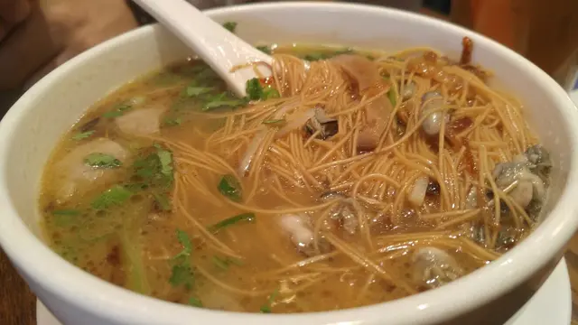 炒土豆絲炒山竹米粉手抓餅,略嫌不夠鬆,但夠香脆。蚵仔煎,十分香口,但蚵仔太碎,也太少,吃不到蚵仔的鮮香味。我要了杯少冰少甜的珍珠奶茶,茶味較淡,珍珠差一點點才煮透。整體覺得好味,有機會會再吃