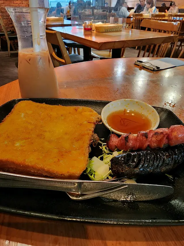 啱啱去完斧山道游泳池游完,游完見有啲肚餓,就過左嚟荷里活廣場搵食,行行下見到呢間門口有個牌塊,上面又有西多又有珍珠奶茶,正正合我心意就入嚟試一試。先講講佢嘅厚西多,饀料就相對偏少,佢跟嚟嘅西多糖漿較為似蜜糖,唔係太夠甜,整個西多口味偏咸,個人就唔太欣賞。同埋佢嘅厚度唔算真係好厚,同一般西多無異。果2串腸仔就烤得算香口,少少焦都幾好食。最驚喜都係杯珍珠奶茶,入口冰涼已經夠舒服。而佢嘅茶味十分之濃,唔會太甜就啱哂我口味。而珍珠奶茶嘅珍珠就唔會太軟唔會太硬,煙煙unun咁口感很好。查看更多